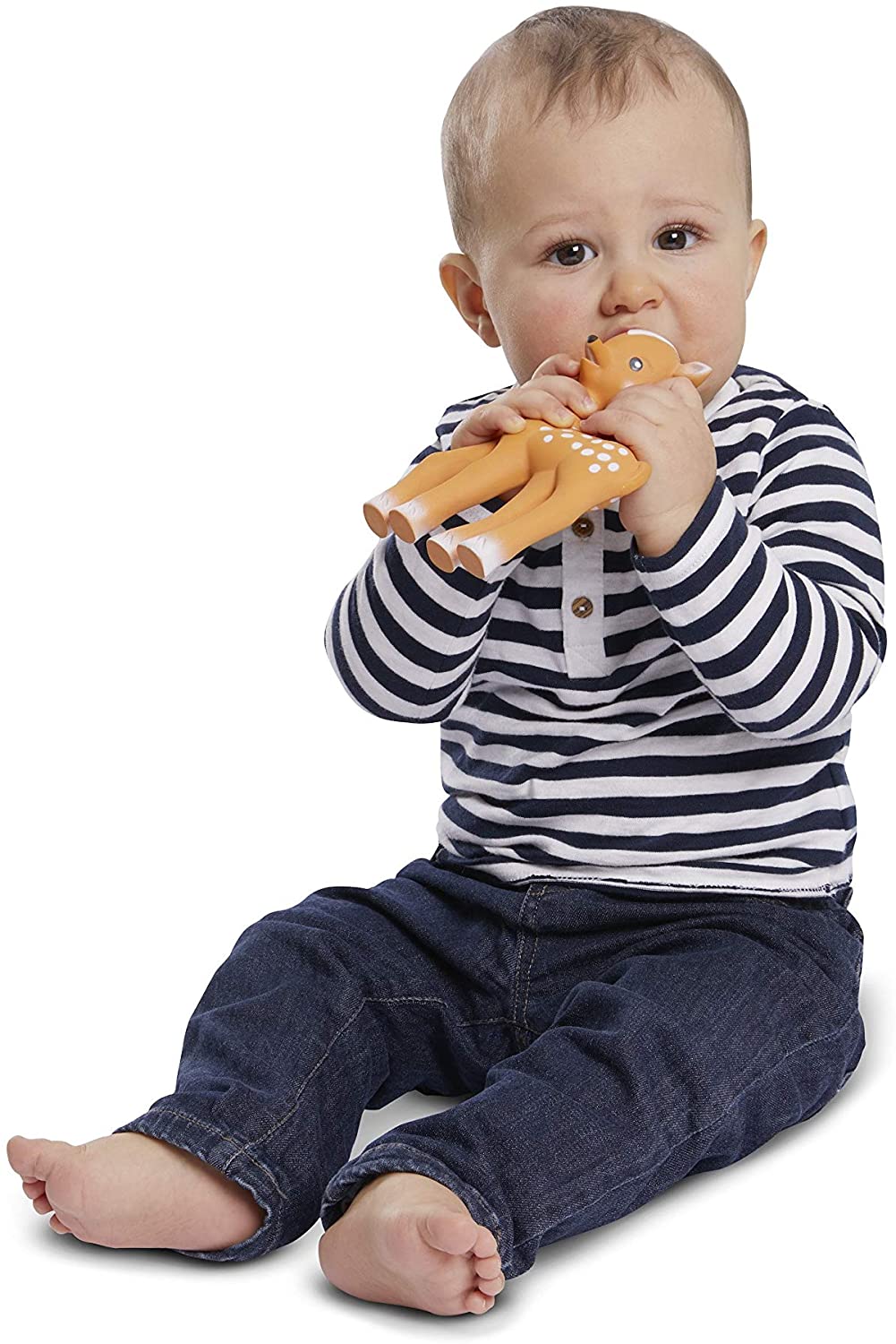 Elaborado con caucho 100% natural, Fanfan el cervatillo es el primer juguete del bebé que estimula todos los sentidos.