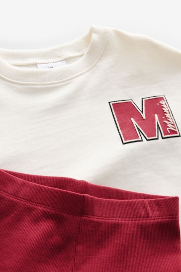 |Niña| Conjunto de top y leggings navideños color crema de Minnie Mouse de Disney (de 3 meses a 7 años)