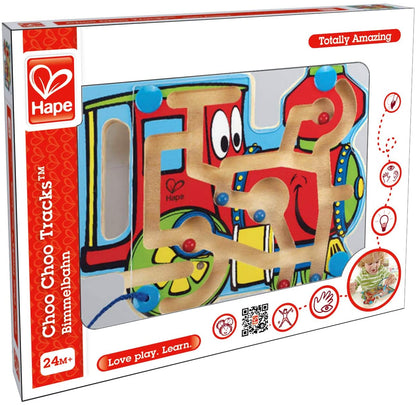 Laberinto portátil en forma de tren con palo magnético para guiar las canicas