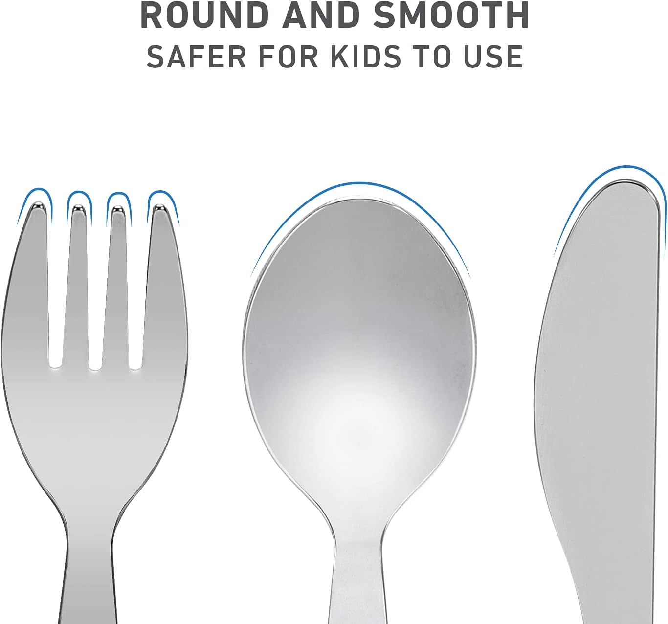 - TAMAÑO HECHO PARA NIÑOS: Juego de cuchillo, tenedor y cuchara más pequeño de lo normal para adultos, ideal para las manos de los niños pequeños.