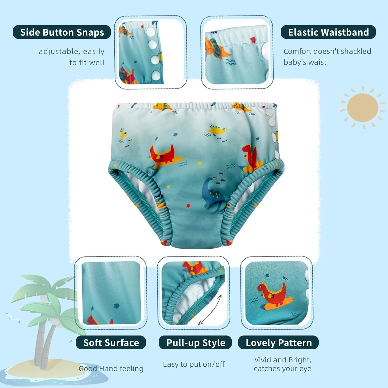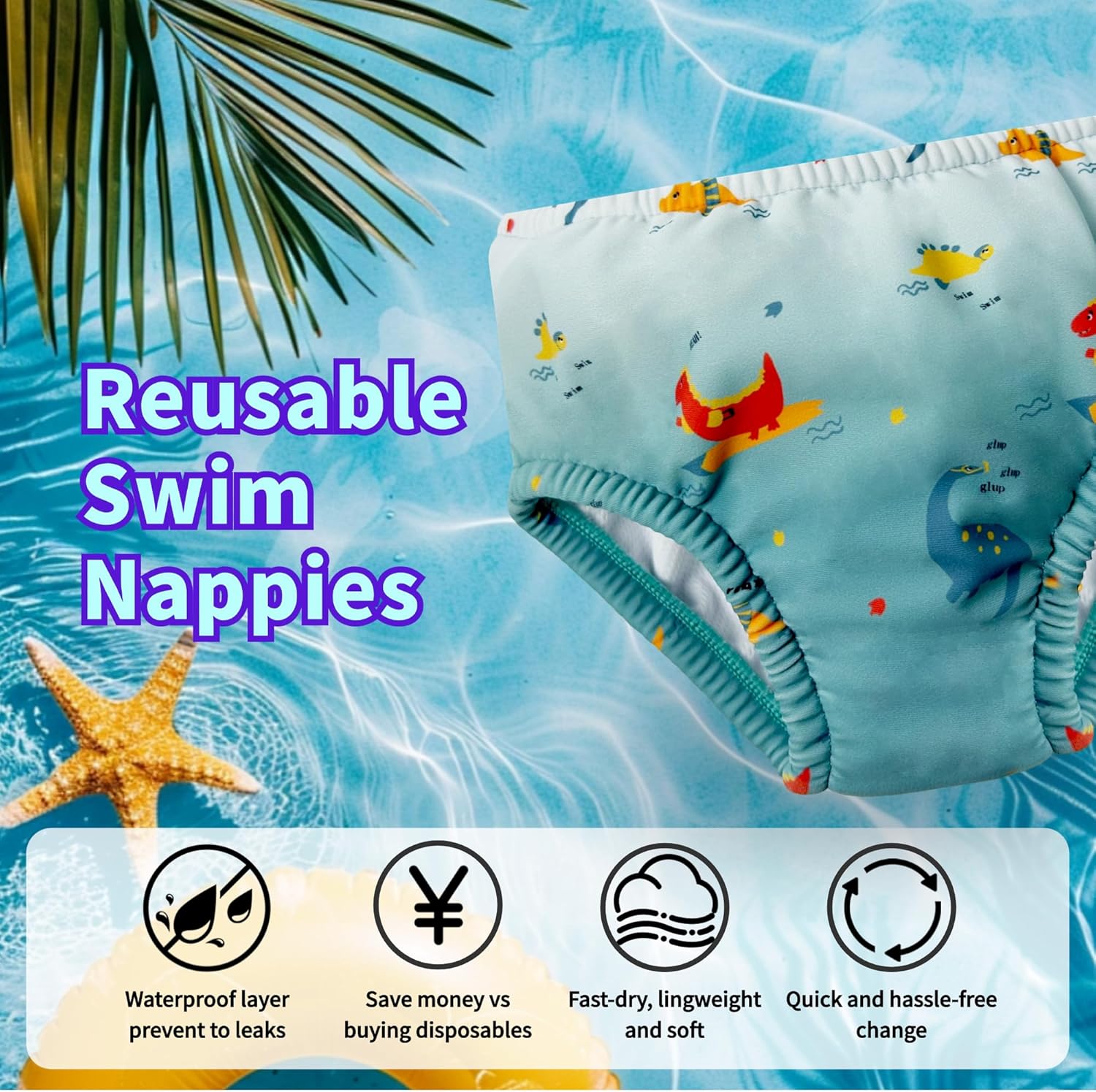 HiABsee Fraldas de natação reutilizáveis laváveis para bebês Fraldas de natação infantis para crianças pequenas UPF 50+ (dinossauro, 0-6 meses)
