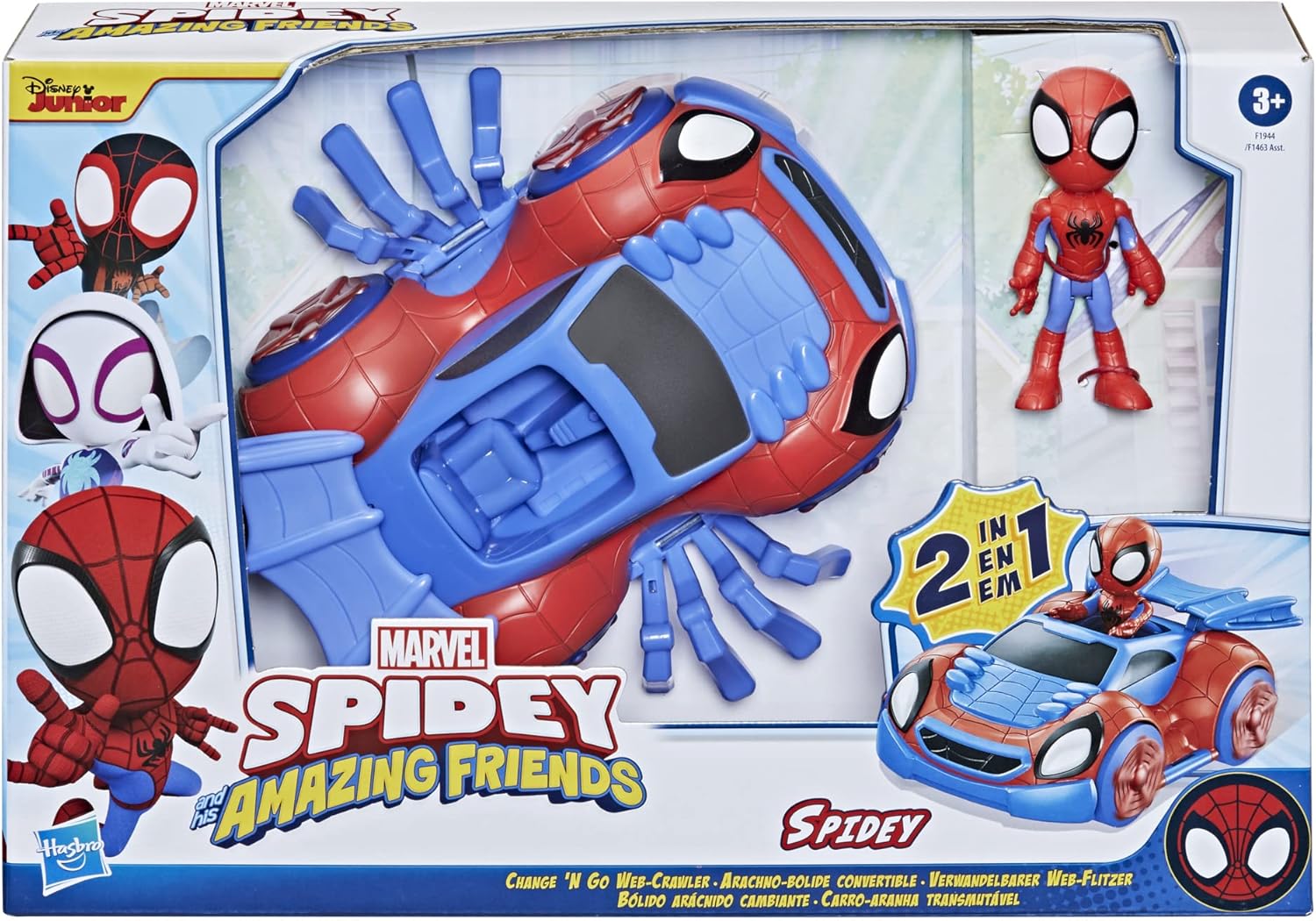 Homem-Aranha e seus amigos incríveis - Figura de ação Marvel Change 'N Go Web-Crawler e Homem-Aranha, veículo 2 em 1, figura de 10 cm, para crianças a partir de 3 anos