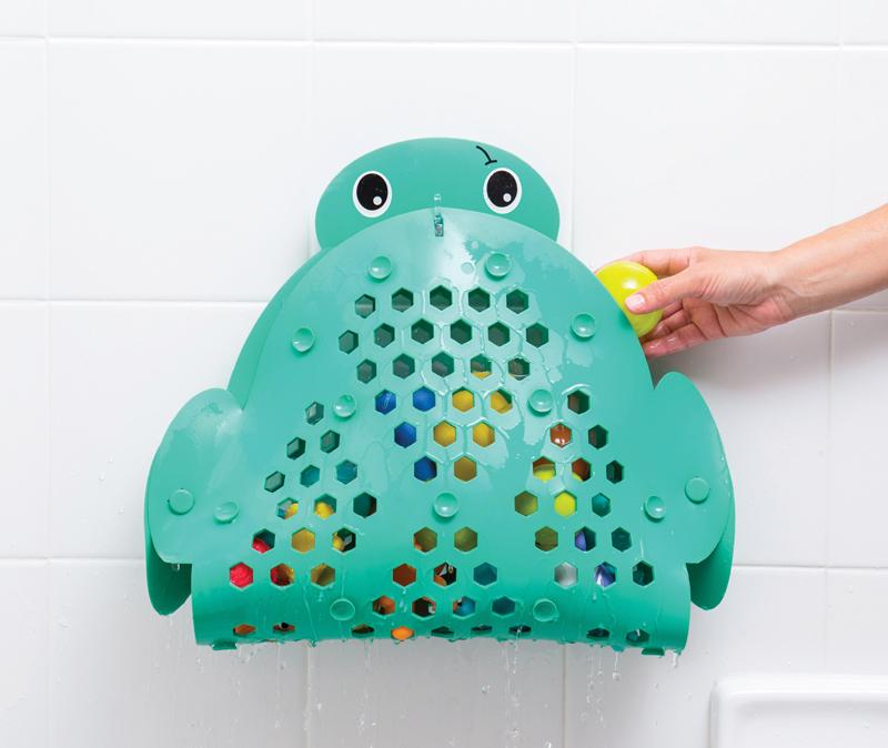 Cuando termines de jugar, dobla la alfombra del baño para crear una canasta de almacenamiento para los juguetes del baño y mantén la bañera ordenada. Incluye un fuerte gancho con ventosa para colgar de forma segura en la pared de la bañera. Como tapete antideslizante, sus súper ventosas lo mantienen en su lugar y también son suaves y cómodos para los dedos de los pies pequeños.