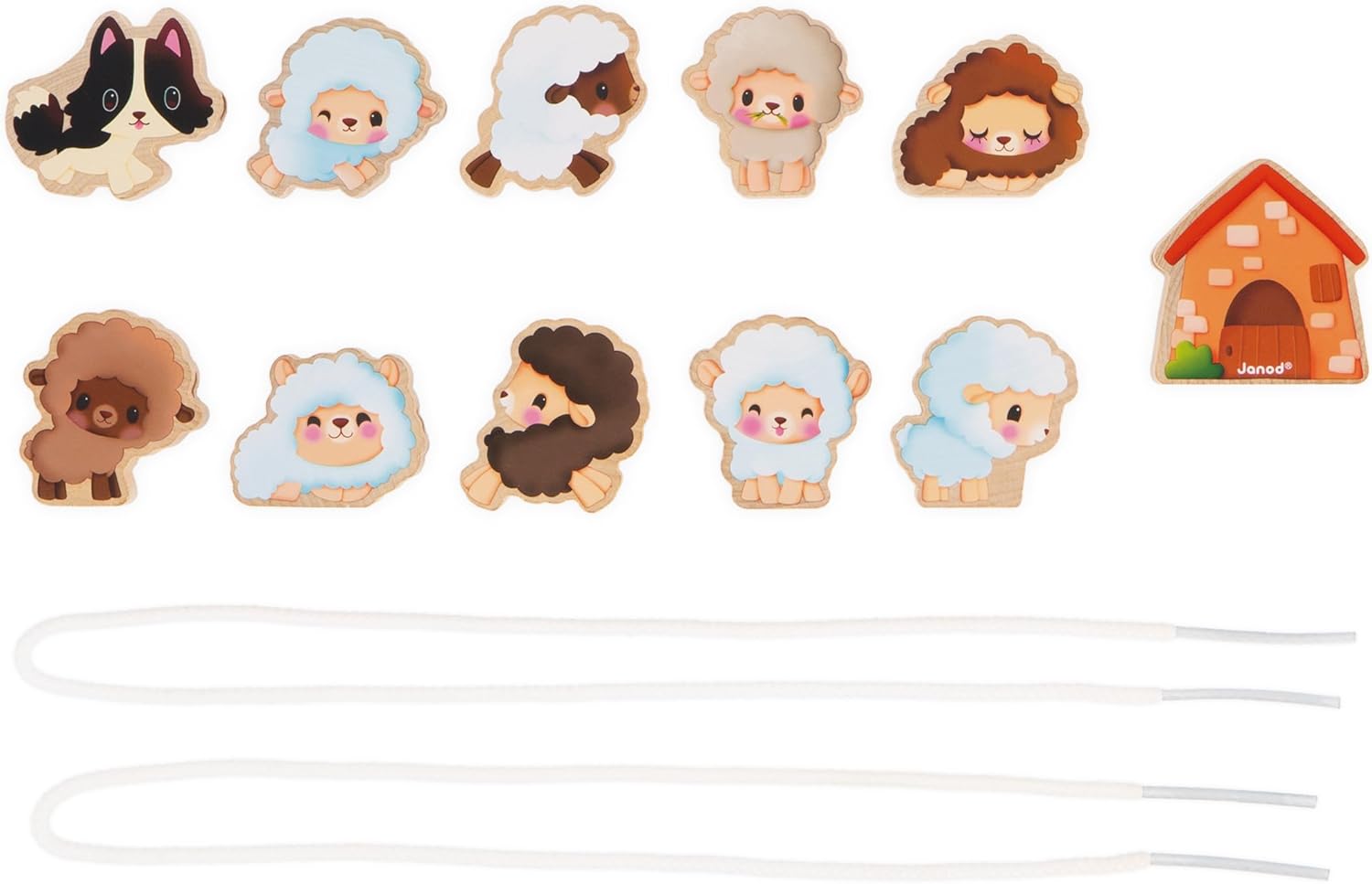 - CARACTERÍSTICAS: Este juguete Janod incluye 9 cuentas de oveja, 1 cuenta de perro, 1 cuenta de granja y 2 cuerdas - Juego de madera FSC - Dimensiones: 14 x 5 x 14 cm - Este juego Janod es adecuado para niños de 24 meses a 4 años