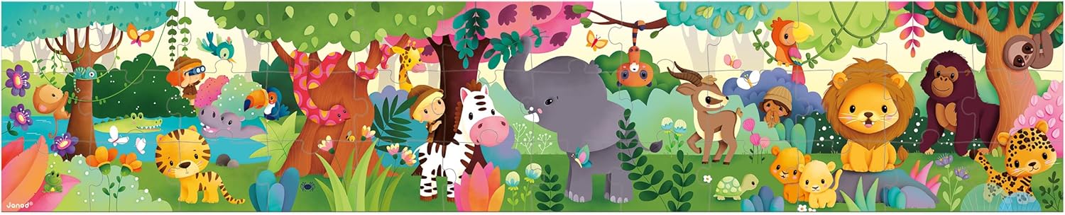 Janod - Puzzle de Animales Salvajes - Puzzle panorámico de cartón FSC de 36 piezas - Desarrolla la paciencia y la concentración - Fabricado en Francia - Puzzle infantil a partir de 4 años,