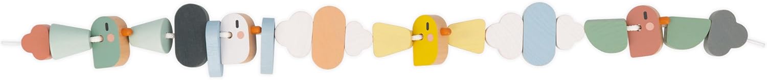 Janod - Cuentas para enhebrar Sweet Cocoon - 21 cuentas de pájaros, alas y nubes - Desarrolla habilidades motoras finas - Juguete de madera FSC - Juego de aprendizaje temprano - A partir de 24 meses,