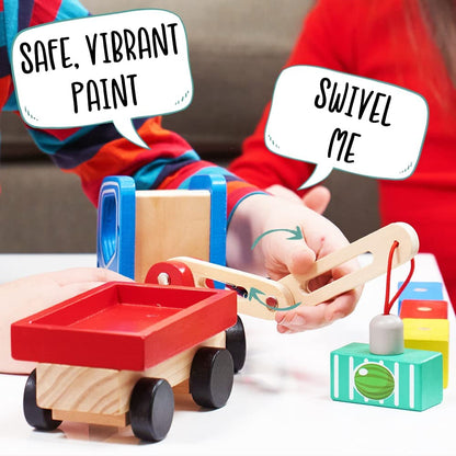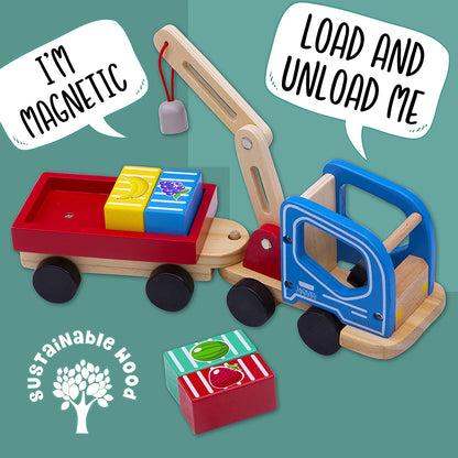 Camión de madera | Utilice nuestros juguetes de desarrollo y actividades tempranas para presentarles a los niños los imanes y las fuerzas. Utilice nuestra grúa magnética y juguetes de construcción para recoger los coloridos contenedores de madera y demostrar la magia del magnetismo. Los niños quedarán fascinados y querrán saber más sobre ciencia con estos juguetes perfectos para niñas y niños.