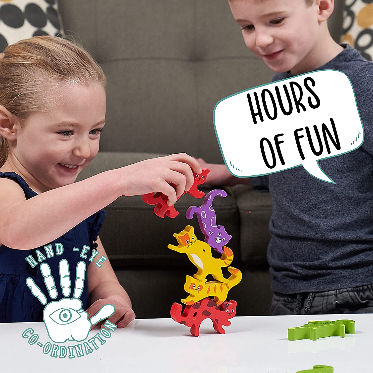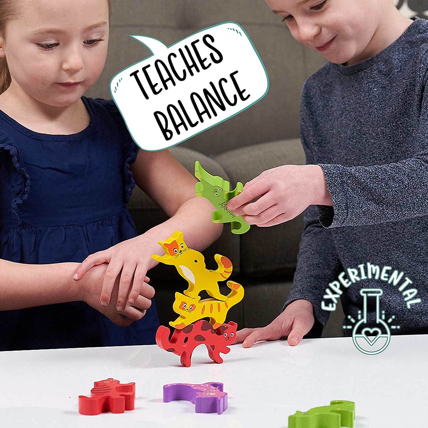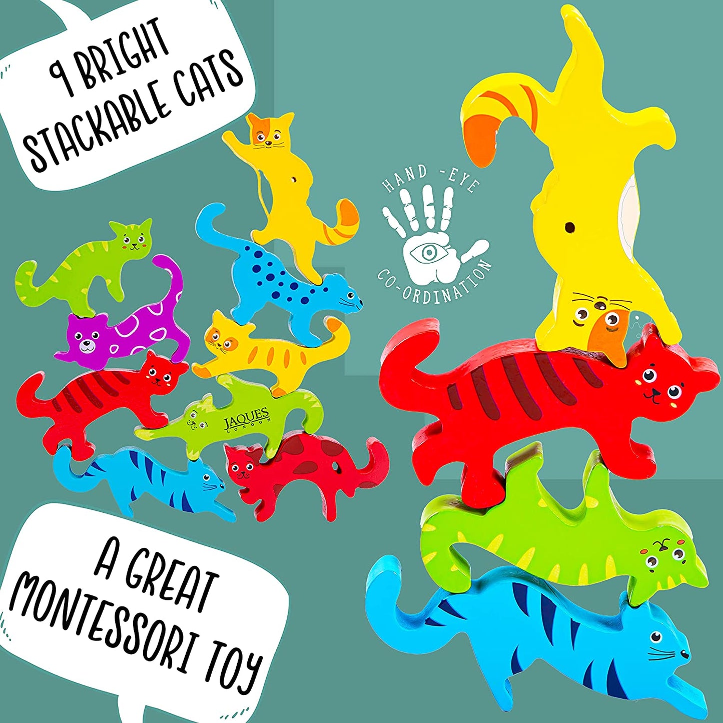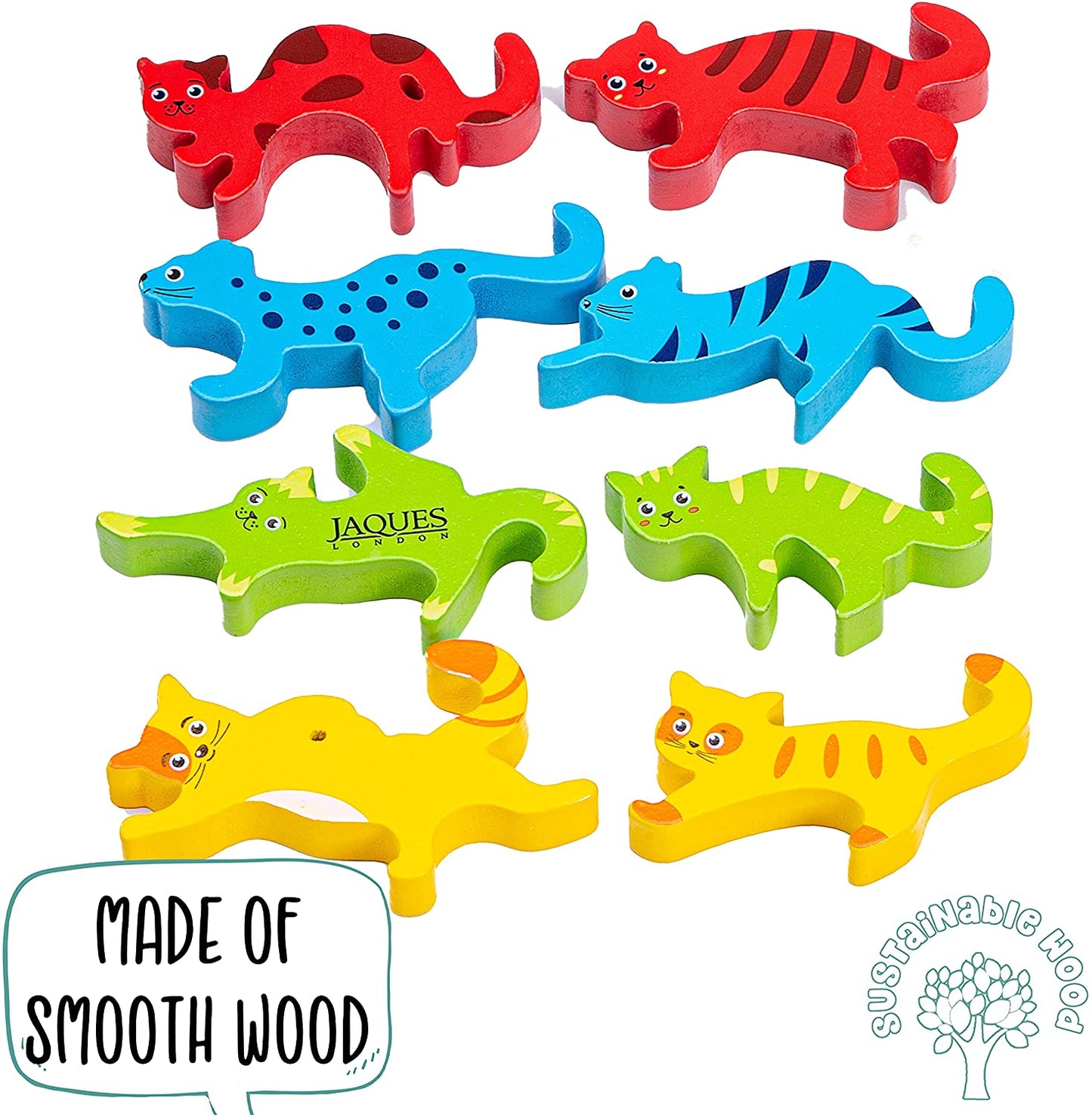 Juguetes Montessori para niños de 3 4 5 6 años | Nuestros juguetes de madera para niños de 3, 4, 5 y 6 años, juguetes de animales, están hechos 100 % de madera aprobada por el FSC. ¡Estos juguetes de madera apilables para bebés están diseñados con pintura a base de agua para horas de juego seguro! El llamativo diseño del gato de este juguete de madera es suave, resistente y sólido, lo que hace que nuestros juguetes para bebés Montessori sean perfectos para las manos pequeñas.