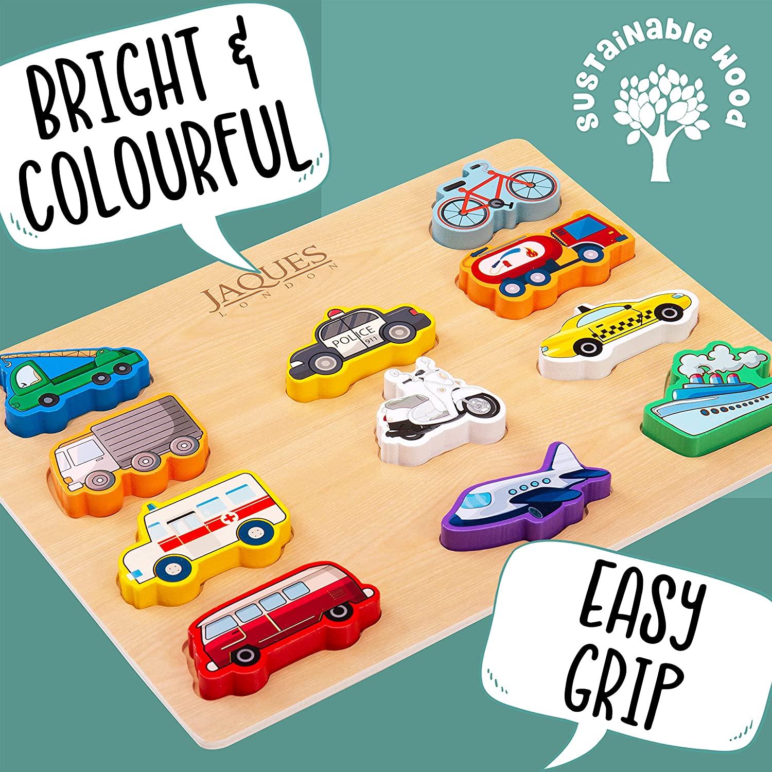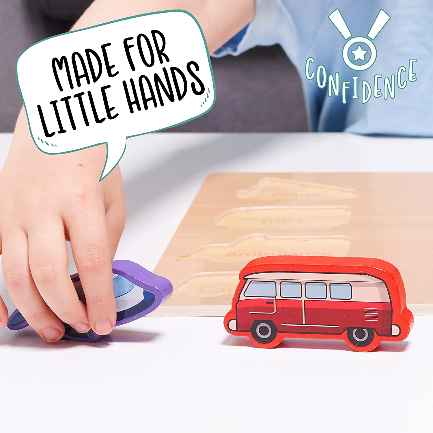 ROMPECABEZAS DE MADERA PARA NIÑOS DE RECONOCIMIENTO DE VEHÍCULOS Y JUGUETES para niños de 2 3 4 años y juguetes para niñas de 2 3 4 años - Rompecabezas de madera para niños diseñados por profesores del Reino Unido - Los rompecabezas de reconocimiento de vehículos para menores de 5 años atraen a los niños, despiertan interés y curiosidad y desarrollan la comprensión del mundo que nos rodea