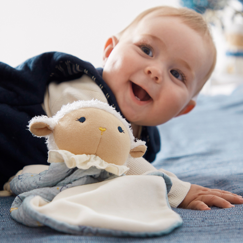 Nuestro calmante doudou de oveja maxi (15,6 pulgadas) tiene múltiples funciones. Se puede utilizar como doudou, manta calentita y también como portachupetes gracias a su nudo en el lateral. Rápidamente se convertirá en esencial para tu ritual de sueño.