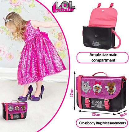 🌸 MINI MUÑECA SORPRESA LOL CON VISUALIZACIÓN --- Este súper lindo bolso bandolera para niñas presenta algunas de las muñecas sorpresa más populares: Unicornio, Diva y Abeja Reina con un lindo adorno de purpurina rosa y cubierta frontal de PVC. Con mucho espacio para dulces, llaves y un pequeño bolso, ¡será el mejor regalo para tu hija!