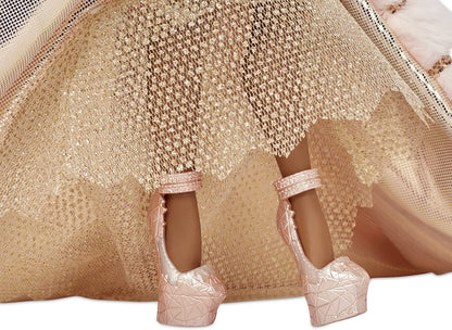 MUCHA DIVERSIÓN: incluye una muñeca de moda exclusiva de edición limitada, moda espectacular, una chaqueta dramática, accesorios dorados de lujo, zapatos feroces, un cepillo y un soporte para muñecas iluminado con el tema Luna y Disco.