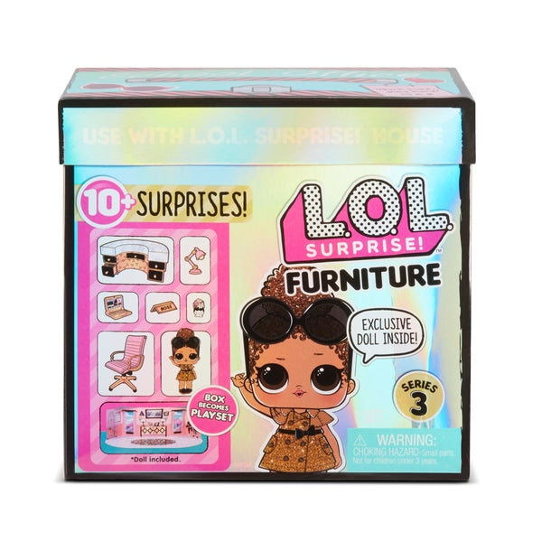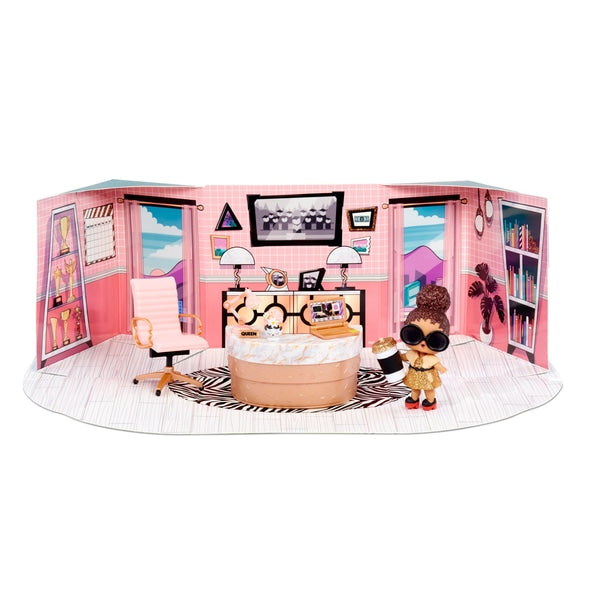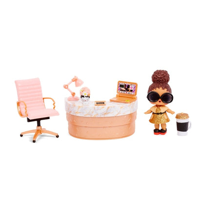 ¡Desembala más de 10 sorpresas con LOL Surprise! muebles con muñeca Boss Queen! El paquete School Office incluye el personaje relanzado de la Serie 3 Boss Queen, listo para el combate. Boss Queen viene con una mesa y una silla fabulosas para poder gobernar el mundo. También viene con un accesorio para computadora portátil, un accesorio para lámpara, una placa de identificación y más. ¡La caja se despliega para convertirse en un glamuroso juego de oficina escolar para que los BB obtengan ese brillo! ¡Colecciona los 4 estilos para mejorar la vida de tu LOL Surprise! muñecas con LOL Surprise! muebles. ¡También puedes usar tu LOL Surprise! muebles en tu LOL Surprise! Hogar. ¡Conoce a la hermana mayor de Boss Queen, Da Boss, en LOL Surprise! AMD. ¡Serie 3! ¡Reúne a toda la familia!