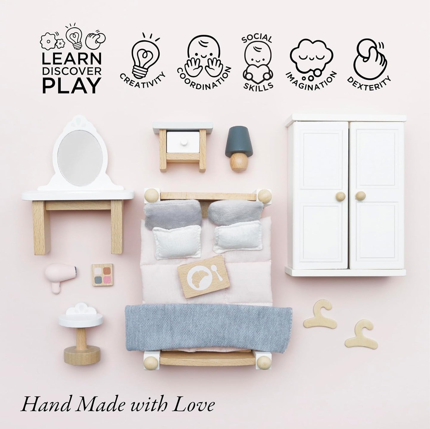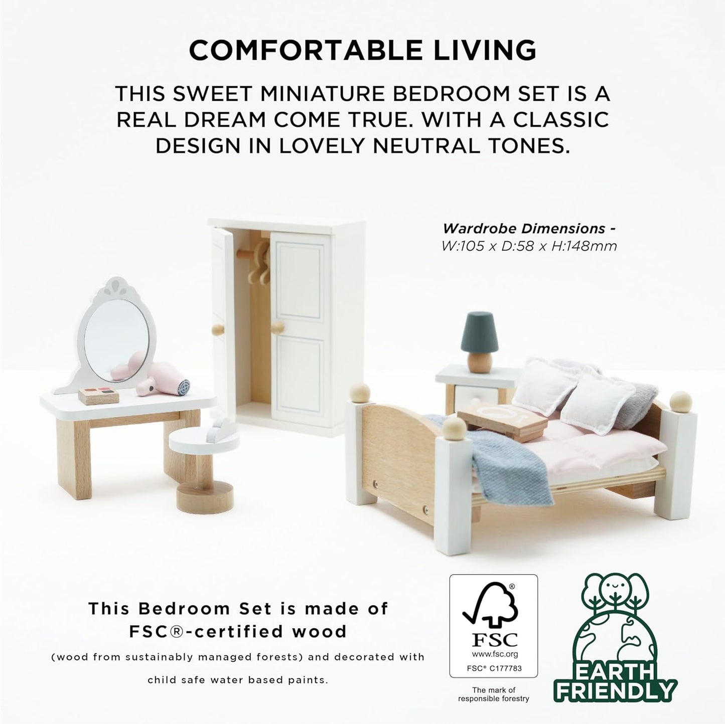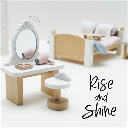 Le Toy Van - Juego de accesorios para casa de muñecas de dormitorio principal Daisylane de madera | Juegos de muebles para casas de muñecas: aptos para mayores de 3 años