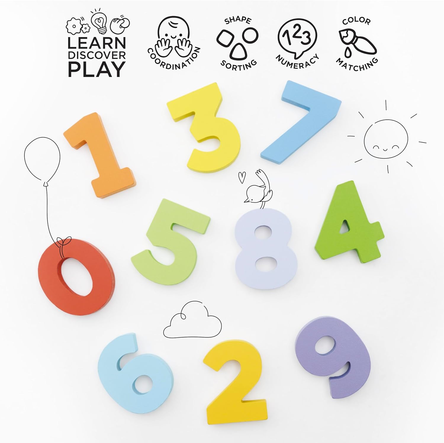 - JUEGO DE ROMPECABEZAS DE CONTAR EDUCATIVO CREATIVO: un fantástico juguete educativo para despertar el interés por los números. Los colores contemporáneos ayudan a desarrollar el reconocimiento del color, mientras que hacer coincidir los cortes numéricos con los puntos táctiles correspondientes desarrolla el reconocimiento de formas y la destreza. Estos números de madera FSC, sostenibles y ecológicos, son un fantástico juguete de aprendizaje