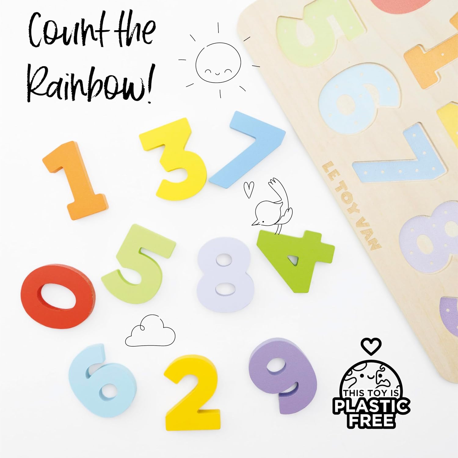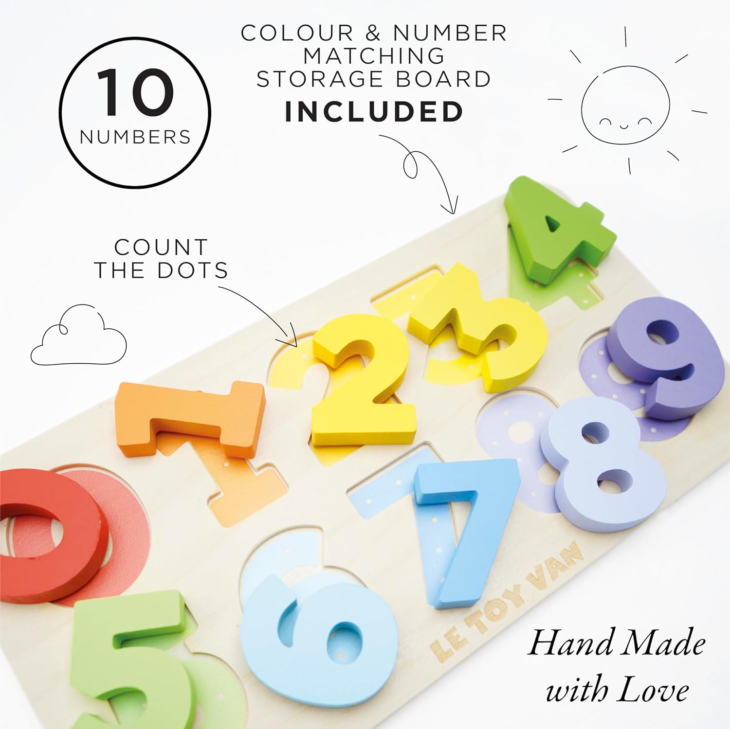 - JUGUETE DE MADERA DE ESTILO CLÁSICO HERMOSAMENTE CONSTRUIDO: Le Toy Van fabrica juguetes para niños bellamente elaborados, como este encantador tablero de rompecabezas para contar. Incluye 10 figuras numéricas y una base de madera natural para una experiencia de aprendizaje práctica.