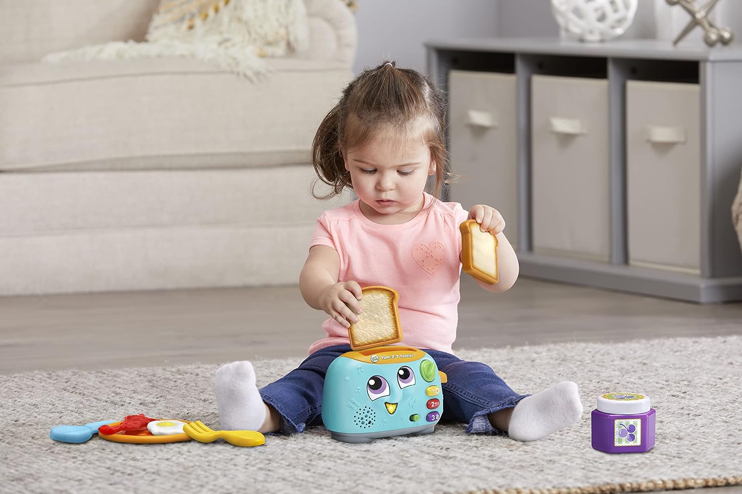 - TOSTADORA YUM-2-3: Juega y aprende con la tostadora Yum-2-3 de Leap Frog. Especialmente diseñado para divertirse jugando a interpretar, observe cómo los bebés sirven su propio y delicioso desayuno utilizando 9 utensilios y alimentos diferentes.