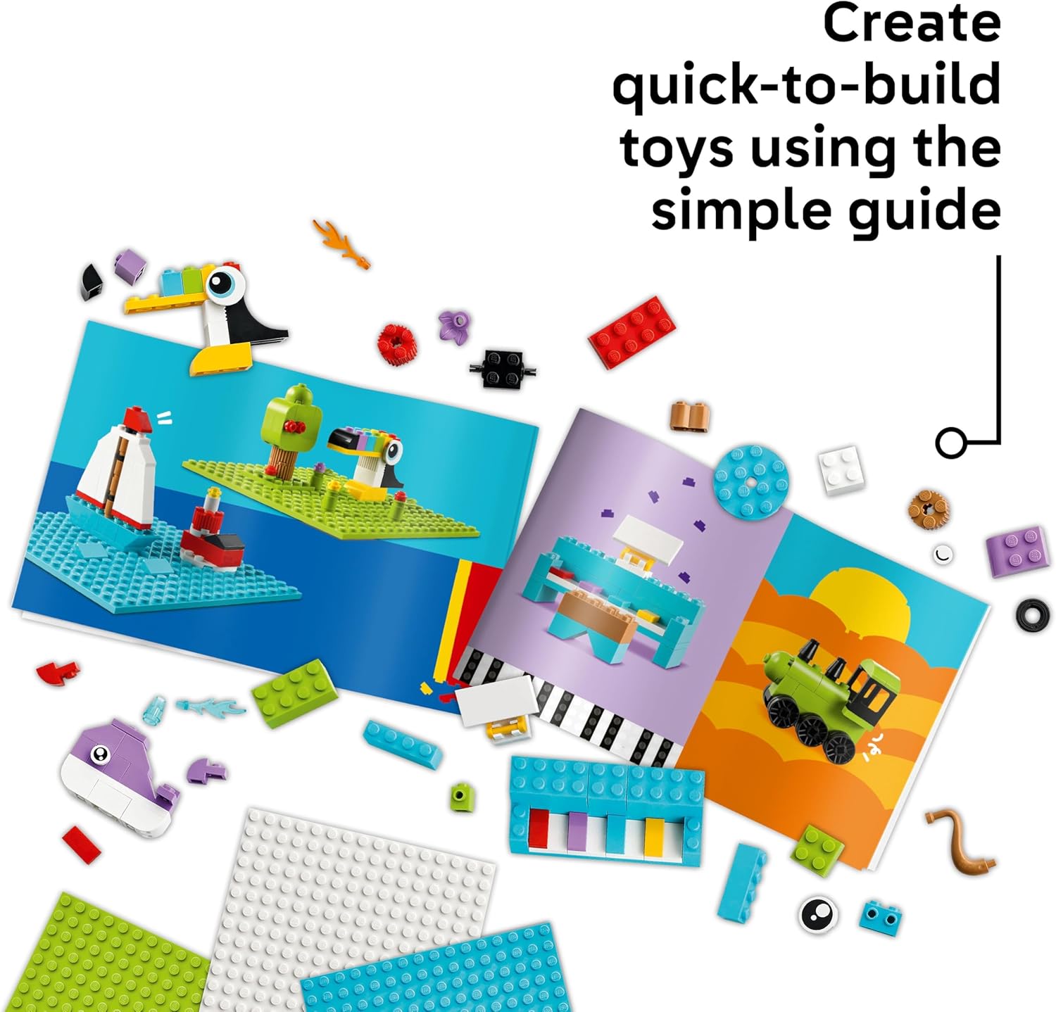 LEGO Classic Caixa Criativa de Construção e Brincadeira - Conjunto de Peças Coloridas - Construa uma Casa, um Caminhão de Bombeiros, um Teclado de Piano, Nuvens e um Arco-Íris - Kit de Artes e Ofícios para Meninos e Meninas a partir de 5 Anos - 11044
