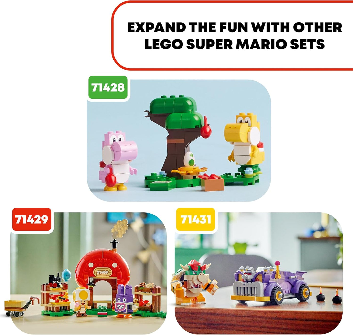 - Se incluyen instrucciones digitales en la aplicación LEGO Super Mario con muchas ideas creativas para que los niños las usen con sus niveles de juguete de Super Mario.