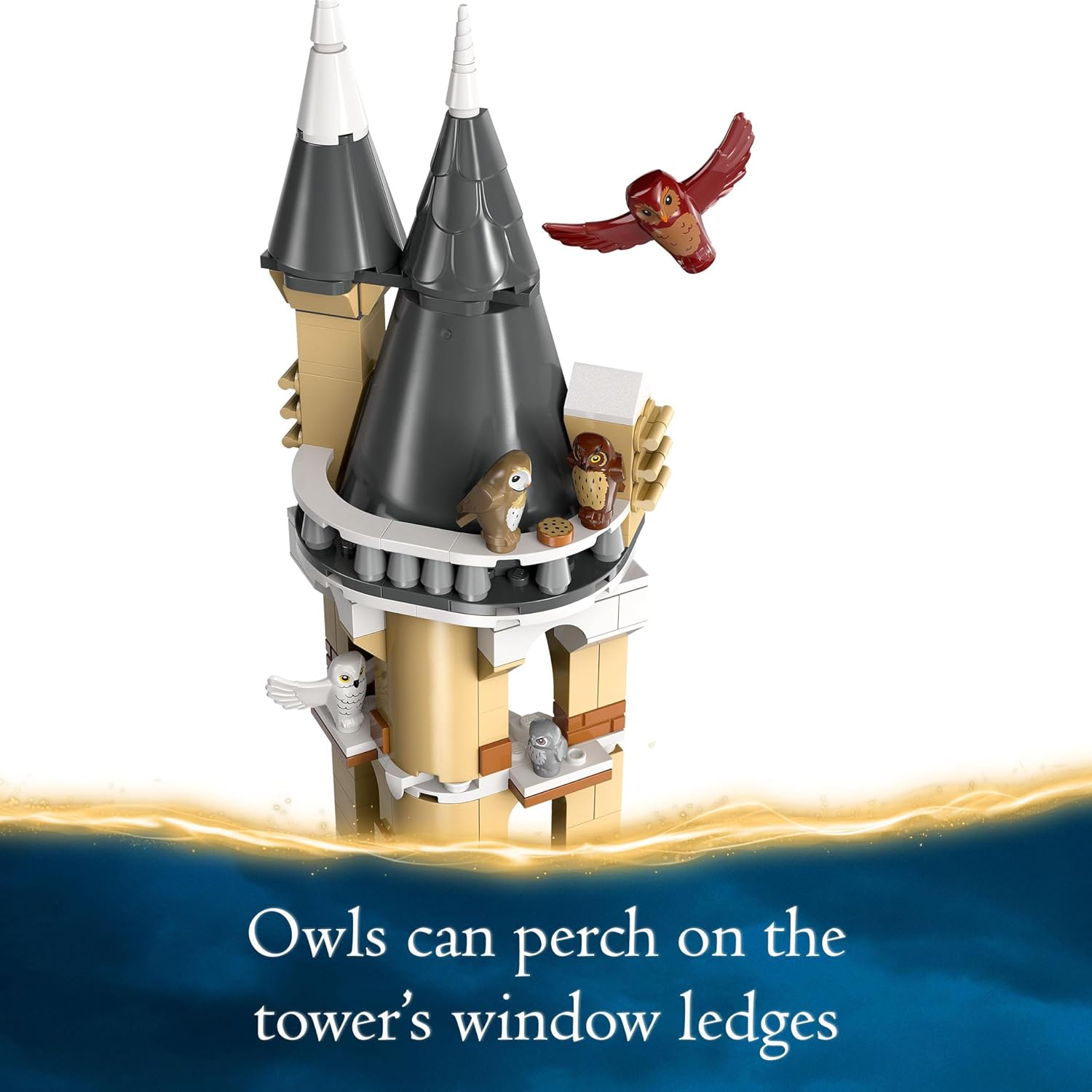 - Juguete de construcción detallado para niños: El Búho es una torre con alféizares para que los búhos se posen, una estatua de búho y accesorios para el cuidado de los búhos.