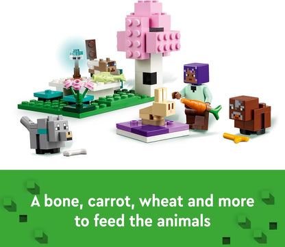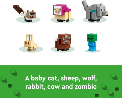 LEGO Minecraft The Animal Sanctuary, juguetes de construcción para niñas y niños a partir de 7 años con figuras de personajes, además de bebé zombi, vaca, lobo, conejo, oveja magenta y gato, regalo para jugadores y niños 21253