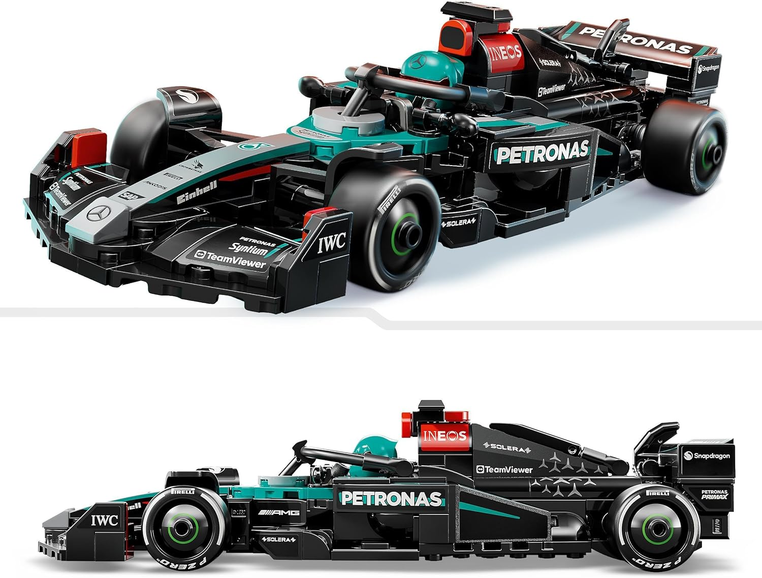 - Authentic details – This LEGO Mercedes car toy replicates the 2024 F1 model with sponsor stickers and wider rear tyres imprinted with “Pirelli”