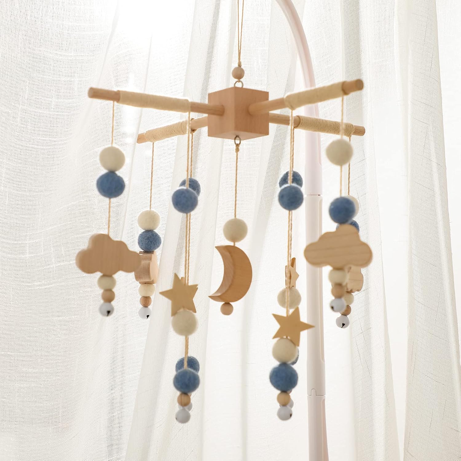 - Erleuchtungsprop: Babybett-Mobile zum Aufhängen am Kinderbett mit Holzsternen und Mondwackeln kann help, die Neugier Ihres Babies zu wecken. Wollknäuel in verschiedenen Farben können das visuelle Urteilsvermögen des Babies für Farben kultivieren gleichzeitig die Flexibilität und Griffigkeit des Körpers Training.