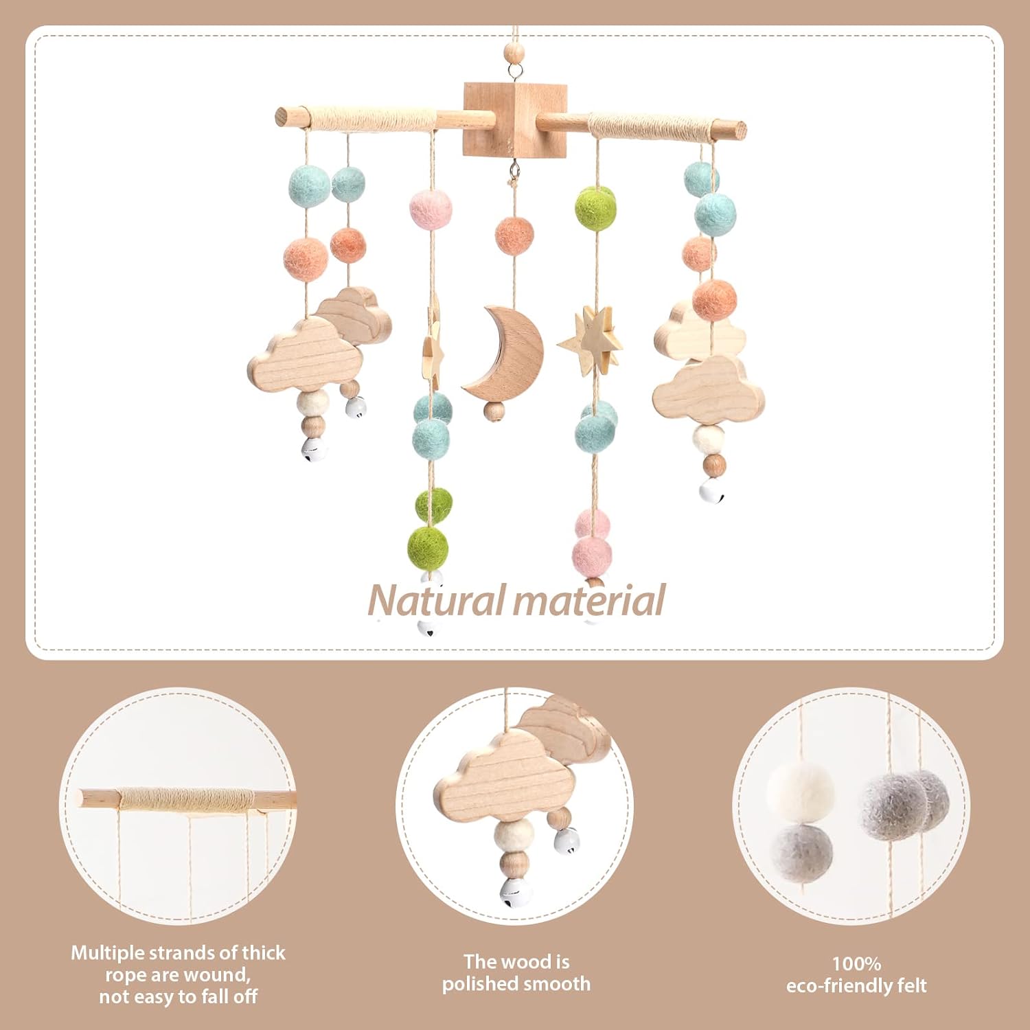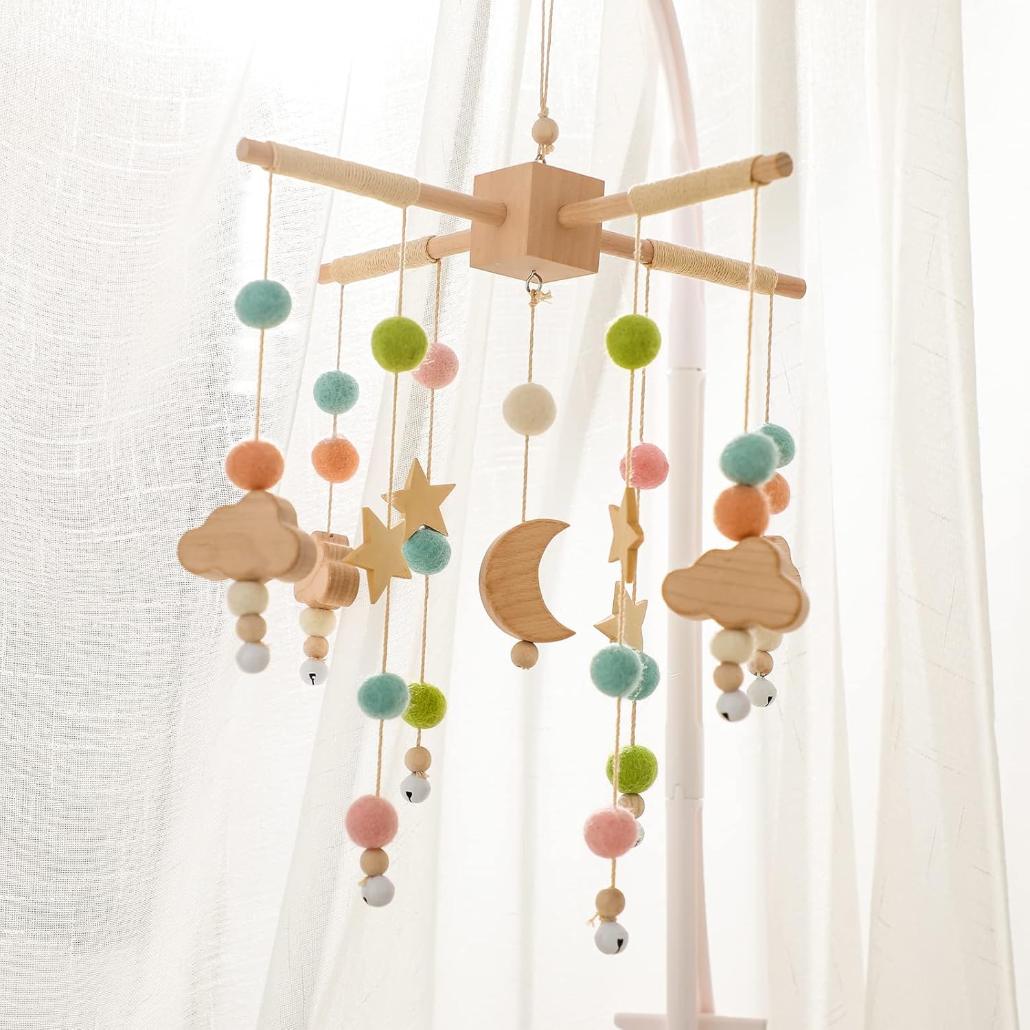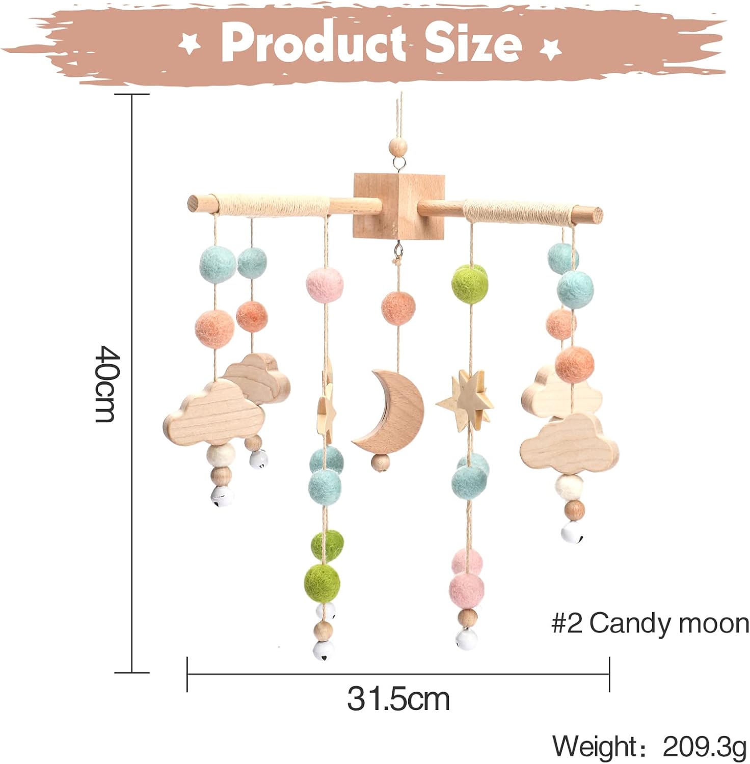- Erleuchtungsprop: Babybett-Mobile zum Aufhängen am Kinderbett mit Holzsternen und Mondwackeln kann help, die Neugier Ihres Babies zu wecken. Wollknäuel in verschiedenen Farben können das visuelle Urteilsvermögen des Babies für Farben kultivieren gleichzeitig die Flexibilität und Griffigkeit des Körpers Training.