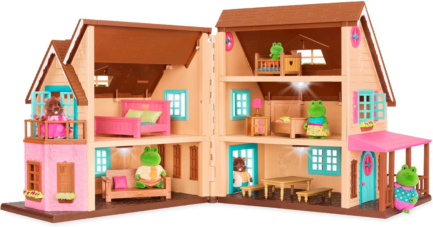 Li'l Woodzeez - Honeysuckle Hillside Cottage - Juego de 20 piezas con casa de juegos, muebles y accesorios - Casas en miniatura y juegos para niños de 3 años en adelante