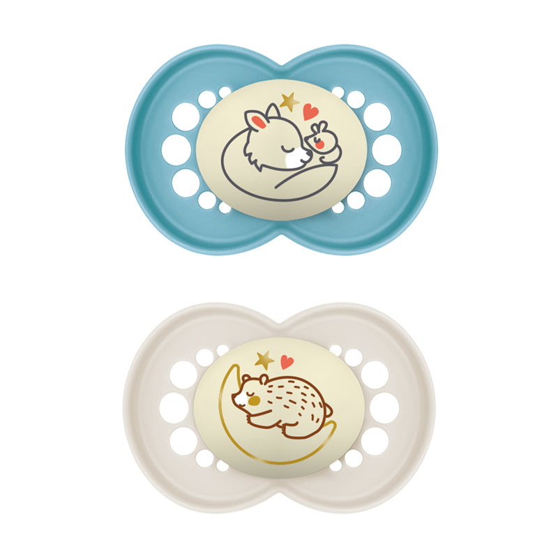 - Los chupetes MAM Night brillan aún más por la noche, lo que los hace fáciles de encontrar en la oscuridad sin molestar a su hijo.