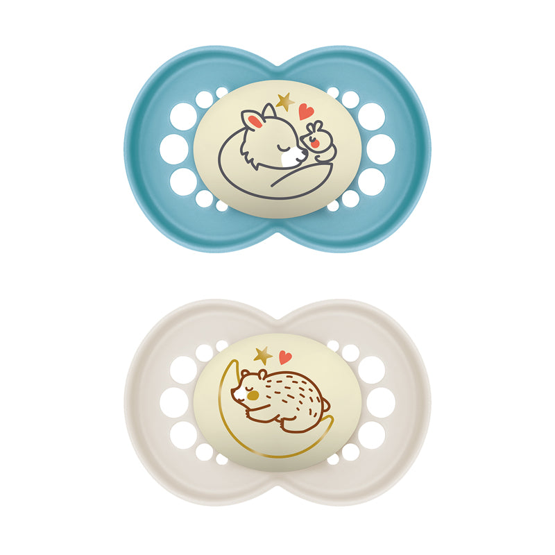 - Los chupetes MAM Night brillan aún más por la noche, lo que los hace fáciles de encontrar en la oscuridad sin molestar a su hijo.