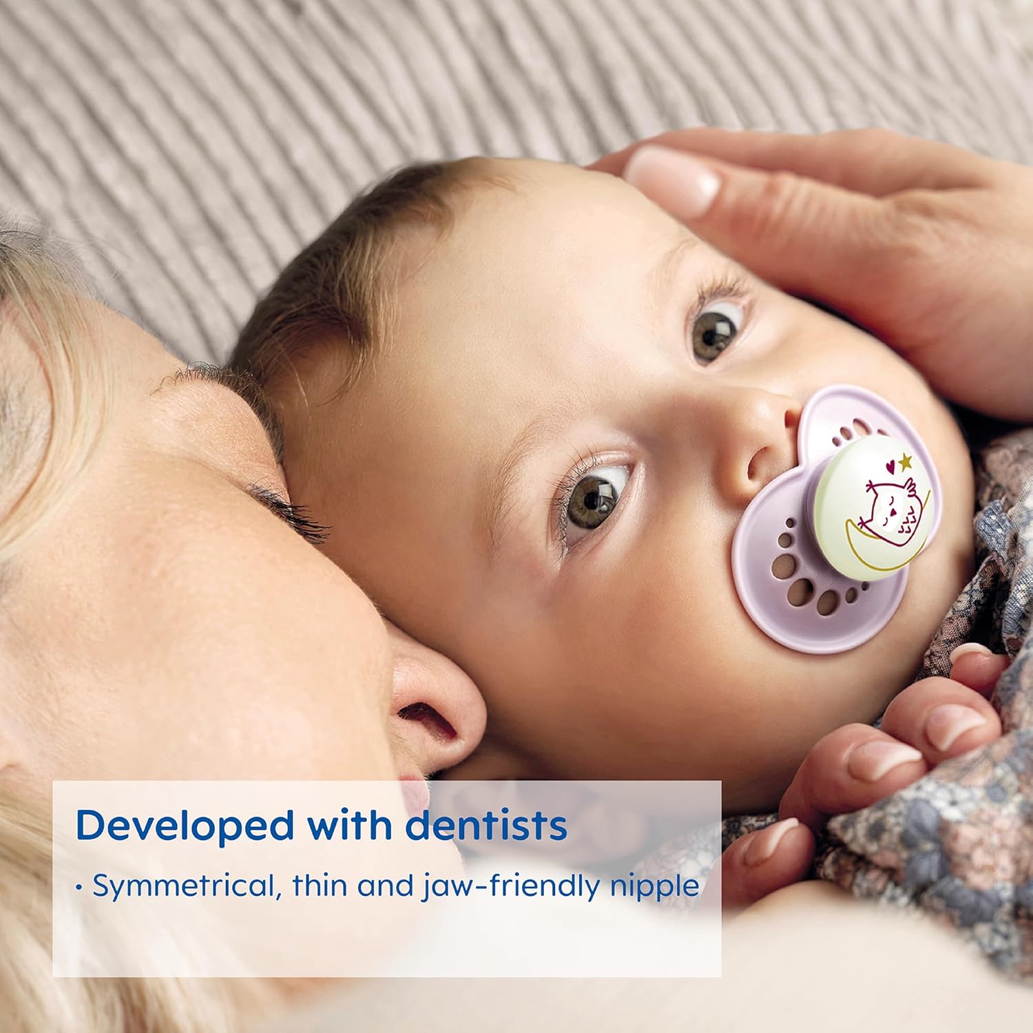 - Desenvolvimento saudável: Desenvolvida em colaboração com dentistas, esta chupeta ortodôntica garante um desenvolvimento saudável dos maxilares graças a um ajuste ideal na boca do seu bebé