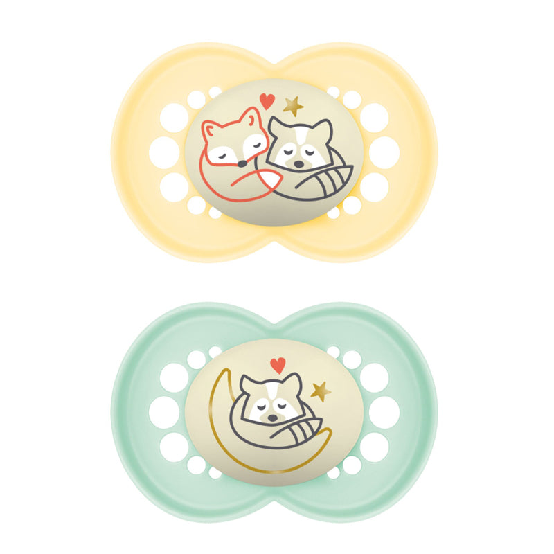 - Los chupetes MAM Night brillan aún más por la noche, lo que los hace fáciles de encontrar en la oscuridad sin molestar a su hijo.