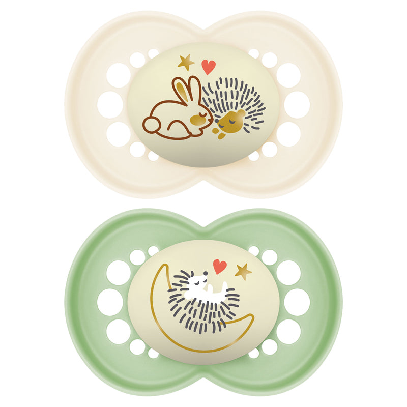 - Los chupetes MAM Night brillan aún más por la noche, lo que los hace fáciles de encontrar en la oscuridad sin molestar a su hijo.