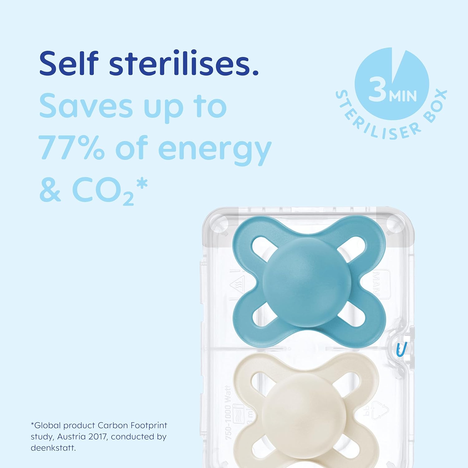 - Detalhes do produto: MAM Start (pacote de 2), chupetas para bebês de 0 a 2 meses com tetinas MAM e estojo de viagem autoesterilizante, itens essenciais para recém-nascidos, branco/verde (os designs podem variar), número do artigo: SR2822U.24