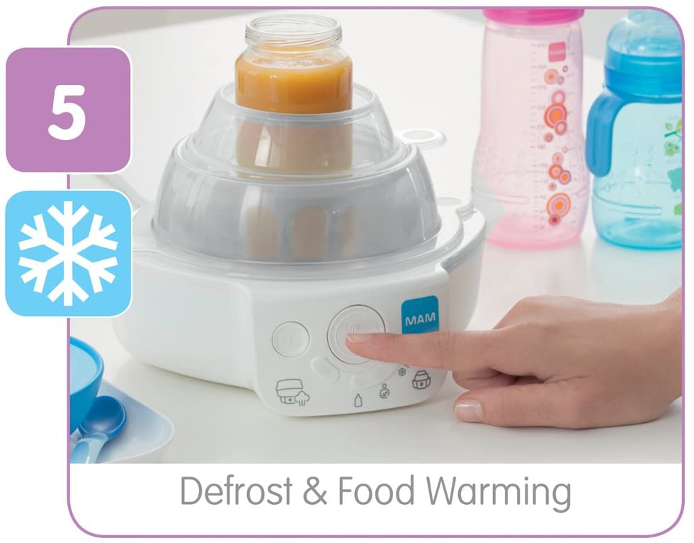 Diseño compacto : este práctico dispositivo se puede utilizar como esterilizador eléctrico, esterilizador de microondas, esterilizador de agua fría, calentador de alimentos y biberones y descongelador de leche materna.