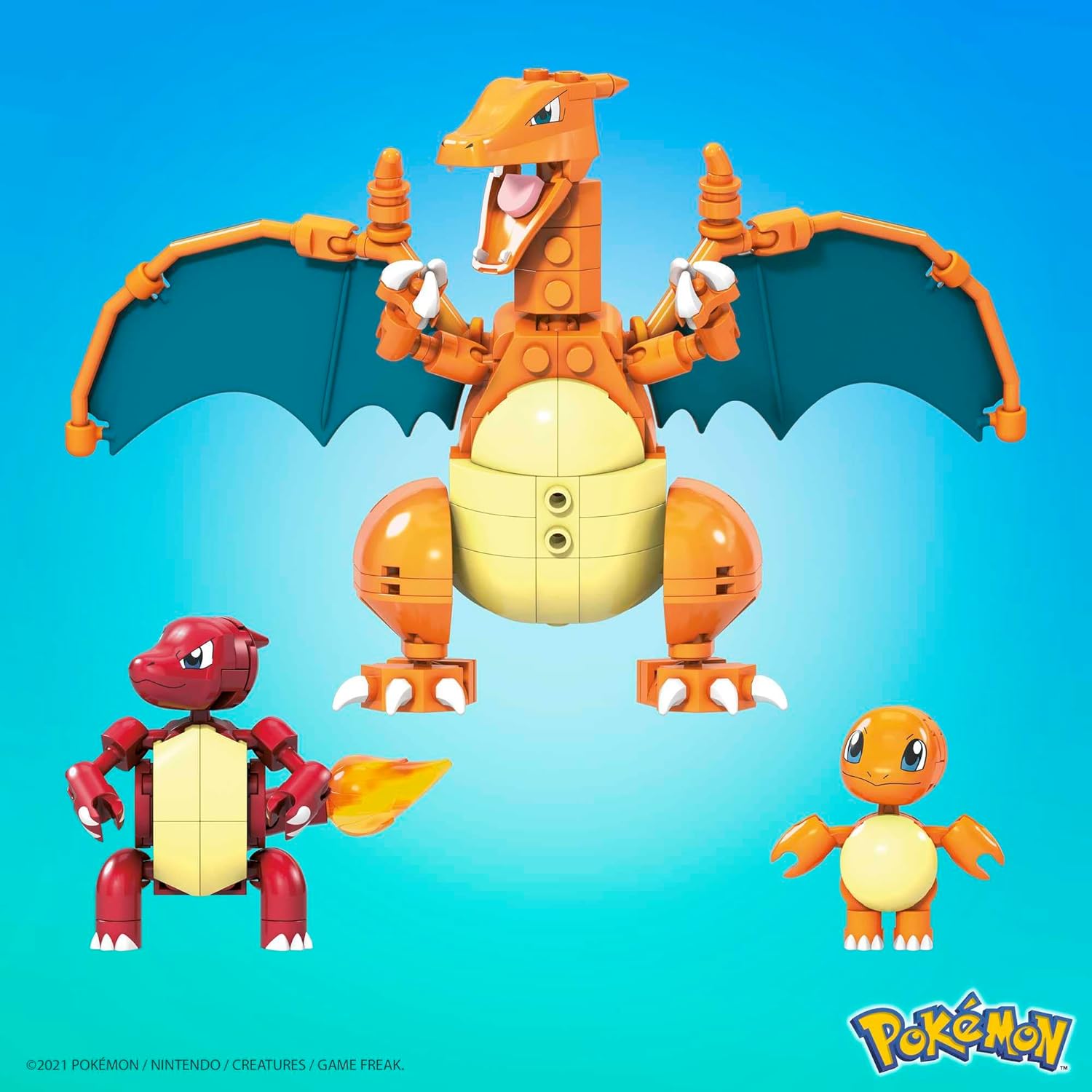 MEGA Brinquedos de construção de bonecos de ação Pokémon para crianças, conjunto Charmander Evolution com 300 peças, 3 personagens articulados, Charmeleon e Charizard, HFG06
