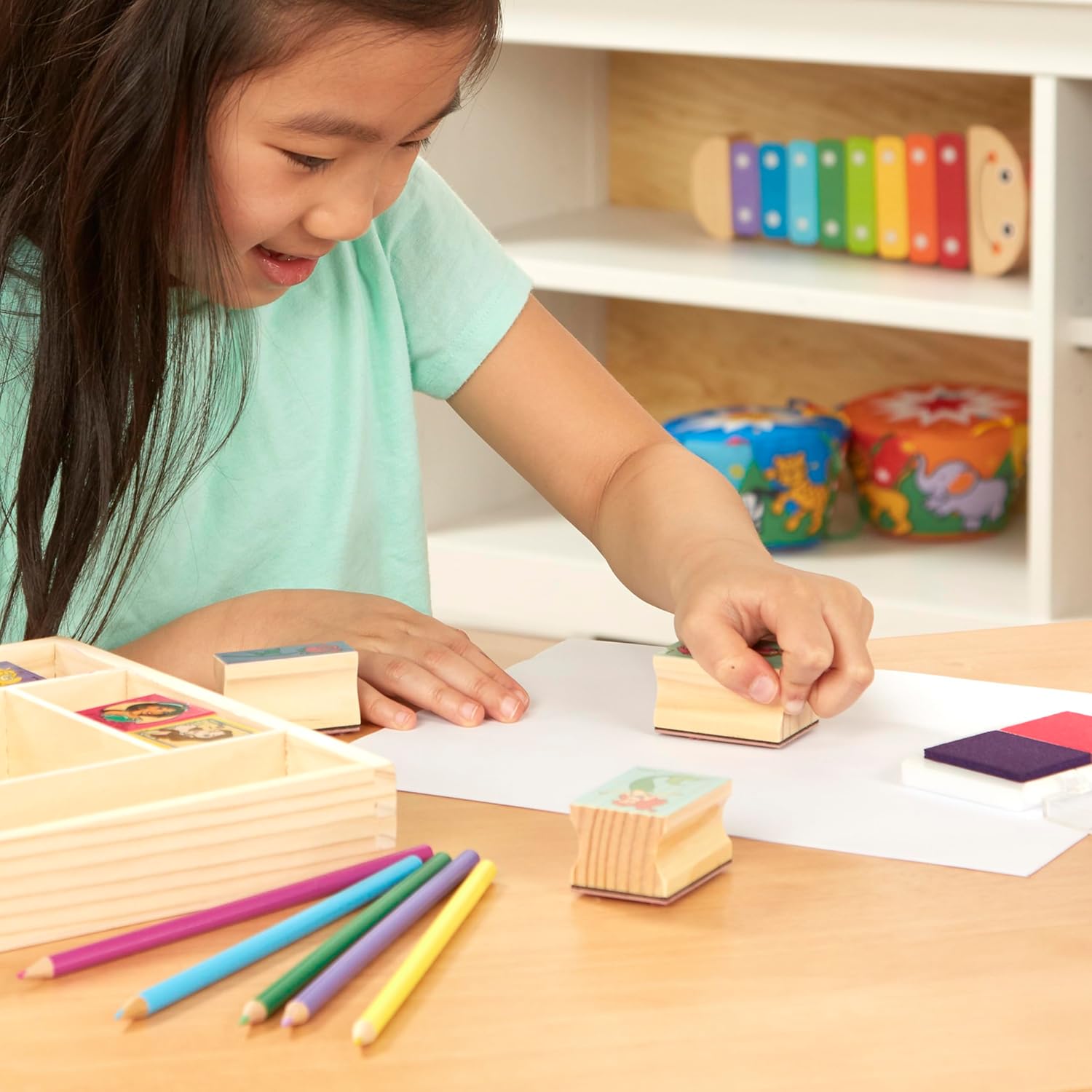 Melissa & Doug Juego de sellos de madera de princesas Disney