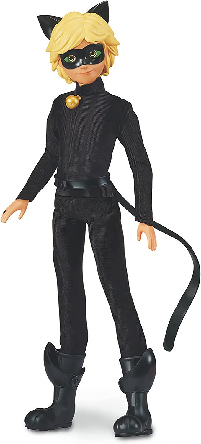 DE ADRIEN A CAT NOIR: Adrien puede mantener en secreto su identidad de superhéroe hasta que necesite salvar París como Cat Noir; El juego viene con muñeca, dos trajes, orejas de gato, botas Cat Noir y máscara removible.