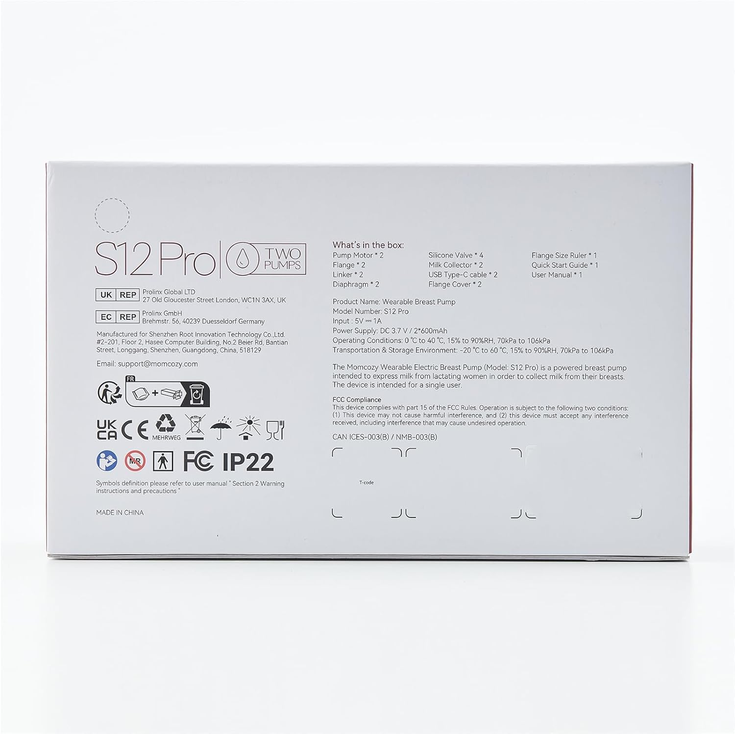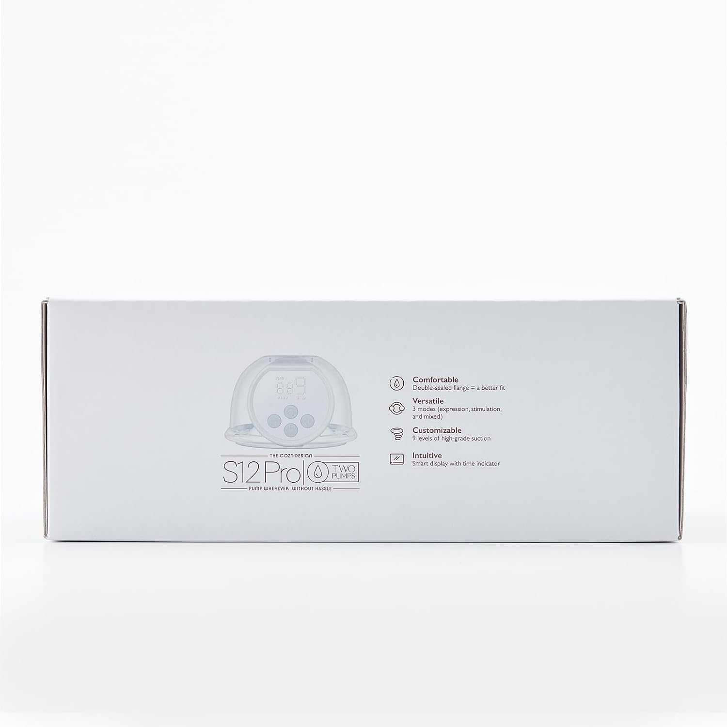 Momcozy Bomba de extração de leite wearable S12 Pro, bomba dupla mãos-livres com flange confortável de dupla vedação, 3 modos e 9 níveis Bomba de extração de leite elétrica, visor inteligente, 24 mm (2, branco)