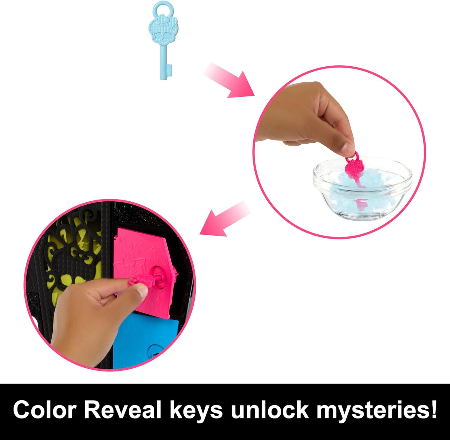 - ¿Puedes ocultar un secreto? Recoge las cuatro llaves Color Reveal y lava su misterioso revestimiento, luego desbloquea sus cuatro compartimentos correspondientes para encontrar elementos ocultos en su interior.