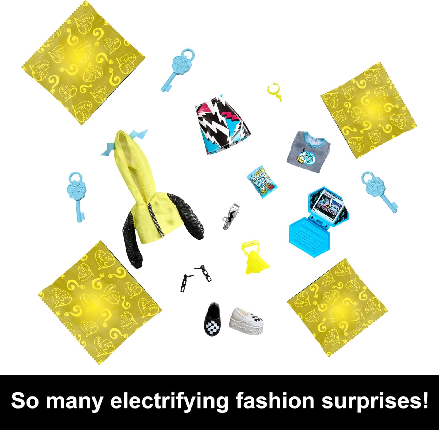 Muñeca Monster High y set de moda, muñeca Frankie Stein, Skulltimate Secrets: Neon Frights, vestidor con más de 19 sorpresas, HNF79