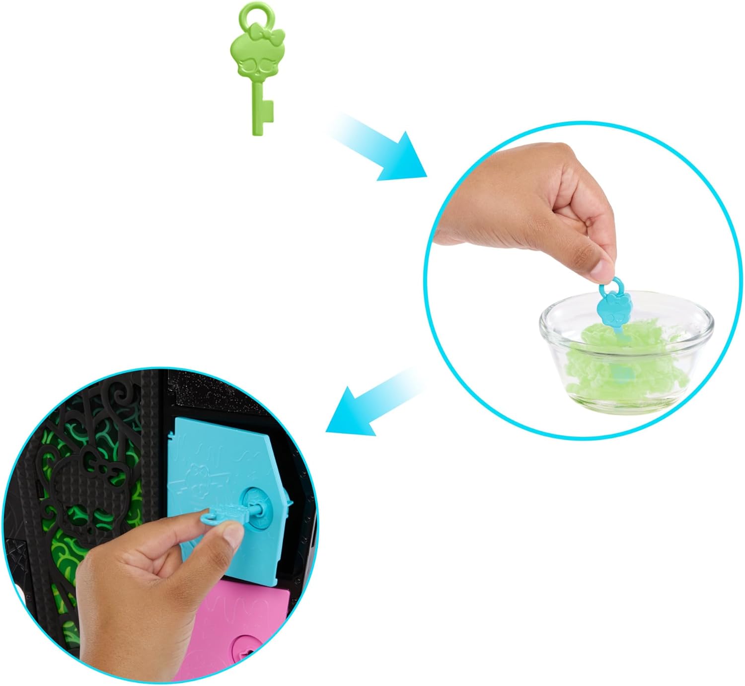 - Skulltimate Secrets está de volta e brilhando como nunca antes! Abra o armário da boneca Ghoulia Yelps para descobrir Neon Frights, como surpresas da moda e acessórios chiques e assustadores.