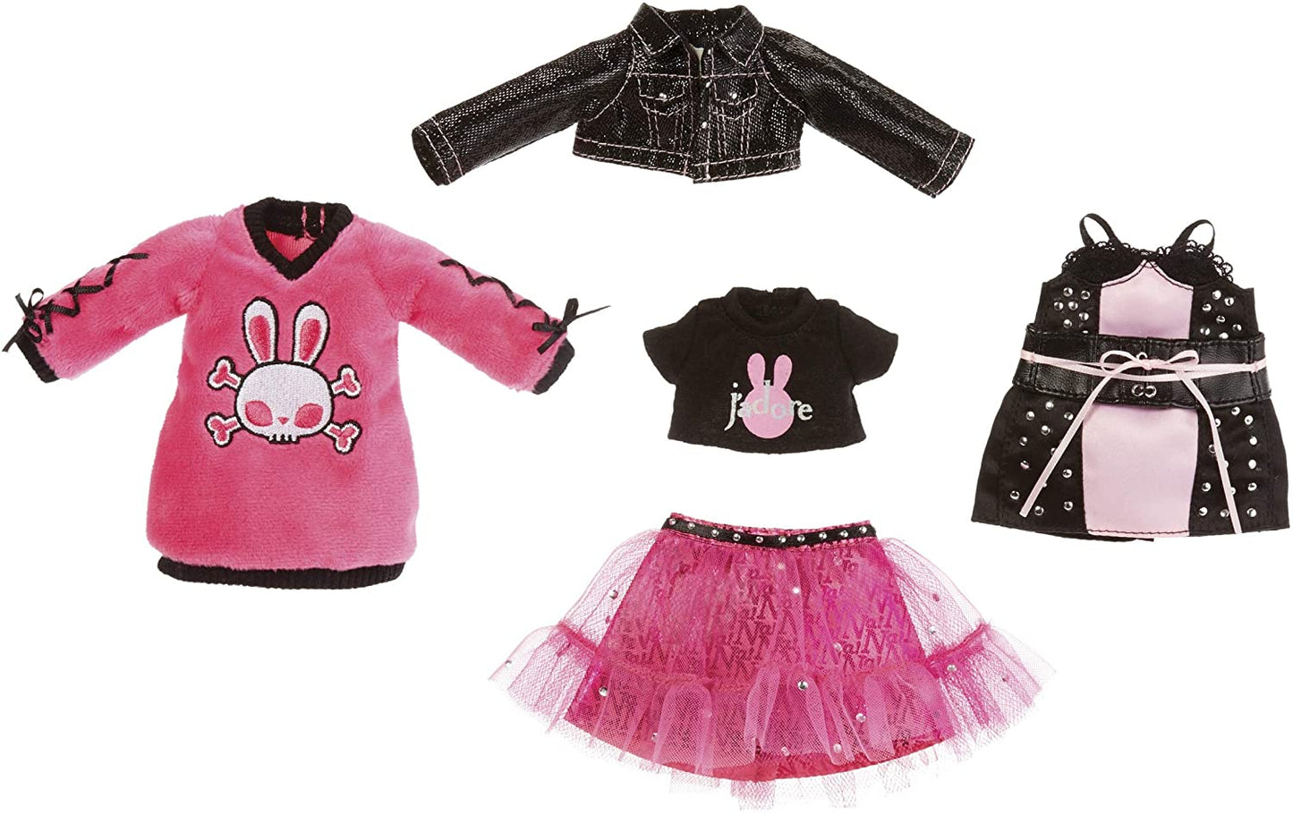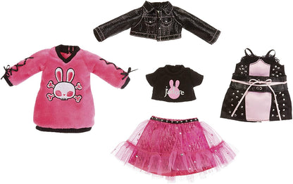 MEZCLA Y COMBINA MODA: ¡Crea más de 100 estilos! Incluye un vestido brillante, una chaqueta genial, una linda camiseta, una falda tutú rosa, una sudadera suave, 4 pares de zapatos, un gorro de conejita peluda y gafas.