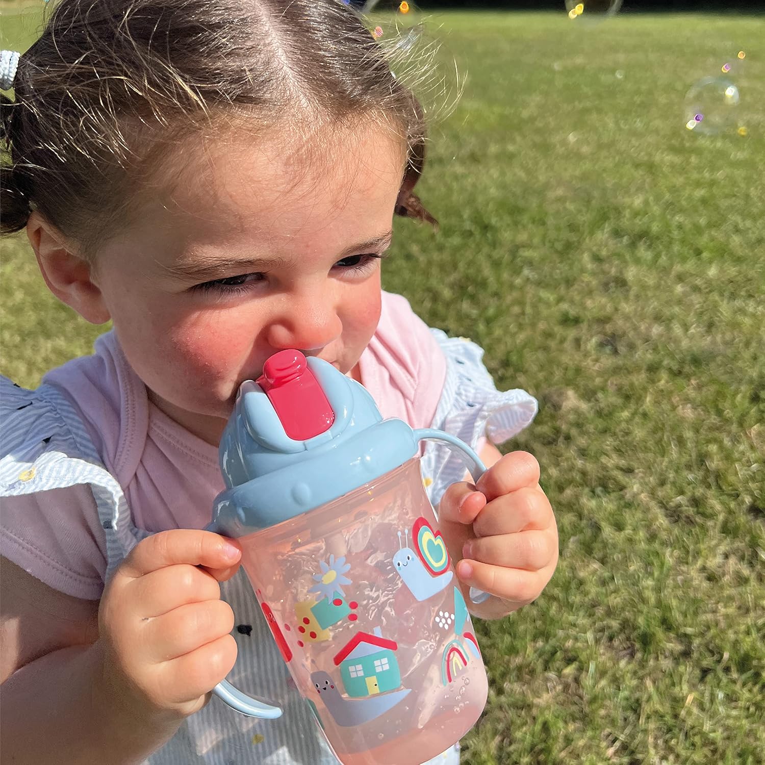 Botella de agua Nuby Flip N Sip - Vaso con pajita antiderrames de 240 ml/8 oz con doble asa y pajita pesada, apto para lavavajillas, vaso adecuado para más de 6 meses (caracoles, paquete de 2) 048526890422