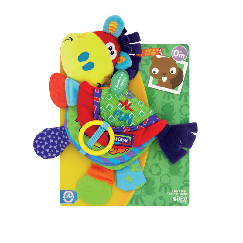 El libro mordedor Flip Flop de Nuby ayuda a su bebé a aprender a través del juego interactivo.