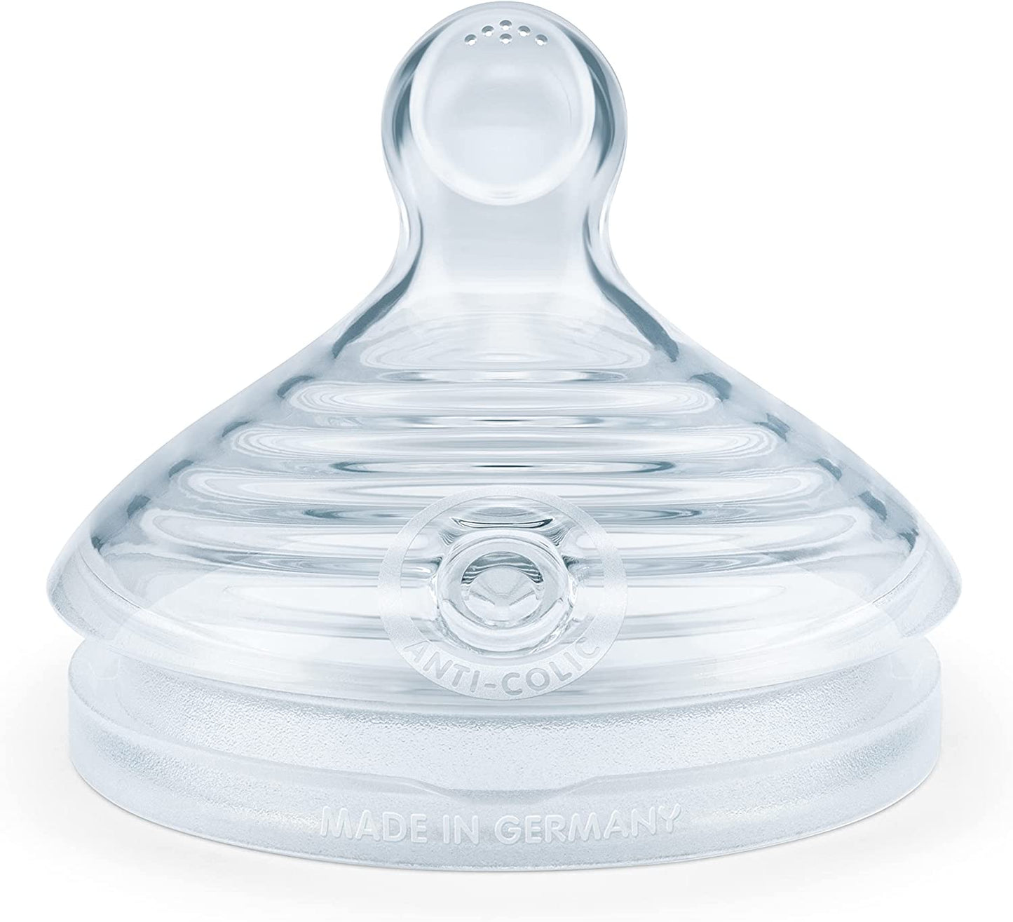 Múltiples aberturas pequeñas en la tetina extrasuave siguen el modelo del pezón de la madre y proporcionan un flujo suave y natural; recomendado por parteras y pediatras**