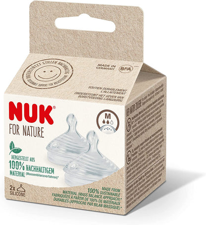 Biberones de repuesto NUK for Nature| Medio | 6-18 meses | Silicona sostenible similar al pecho con ventilación anticólicos | Sin BPA | 2 unidades, transparente.