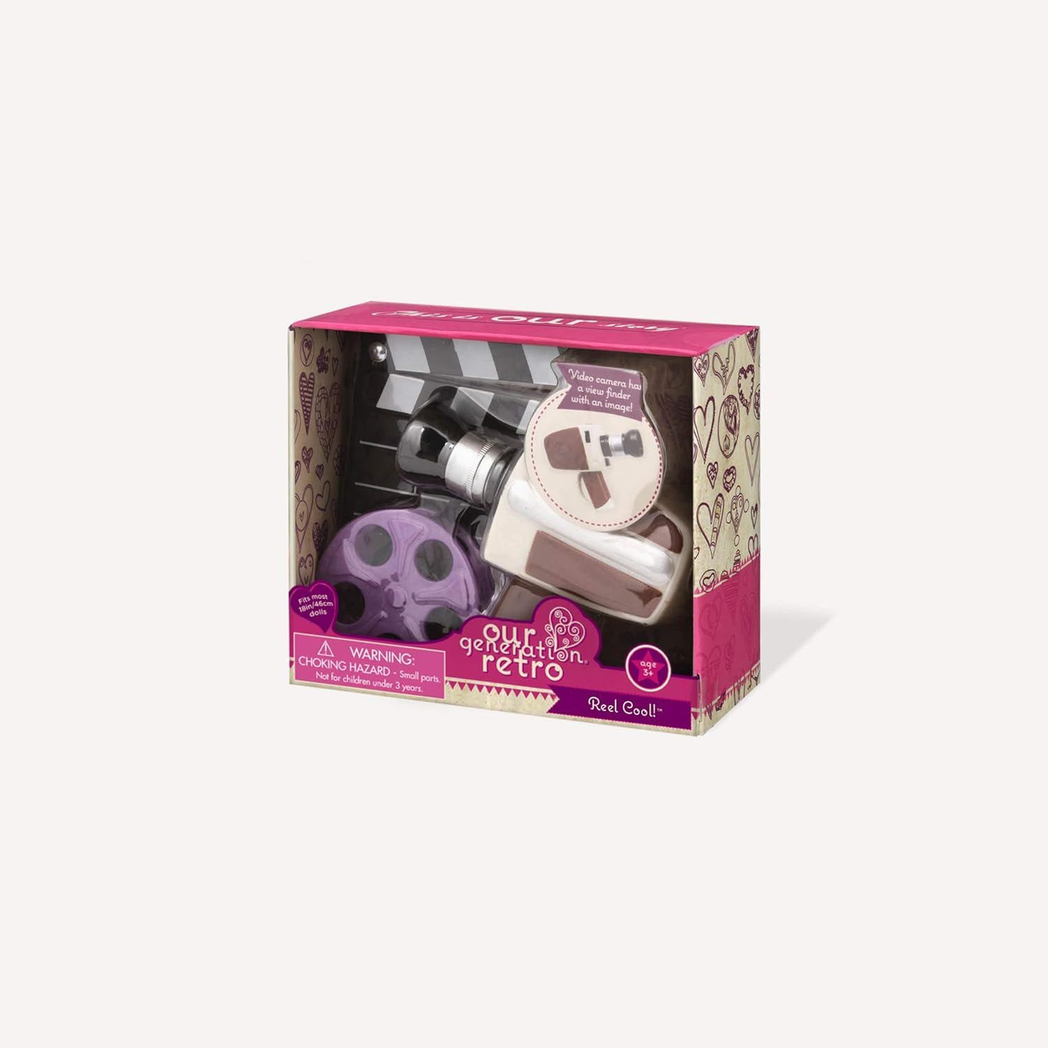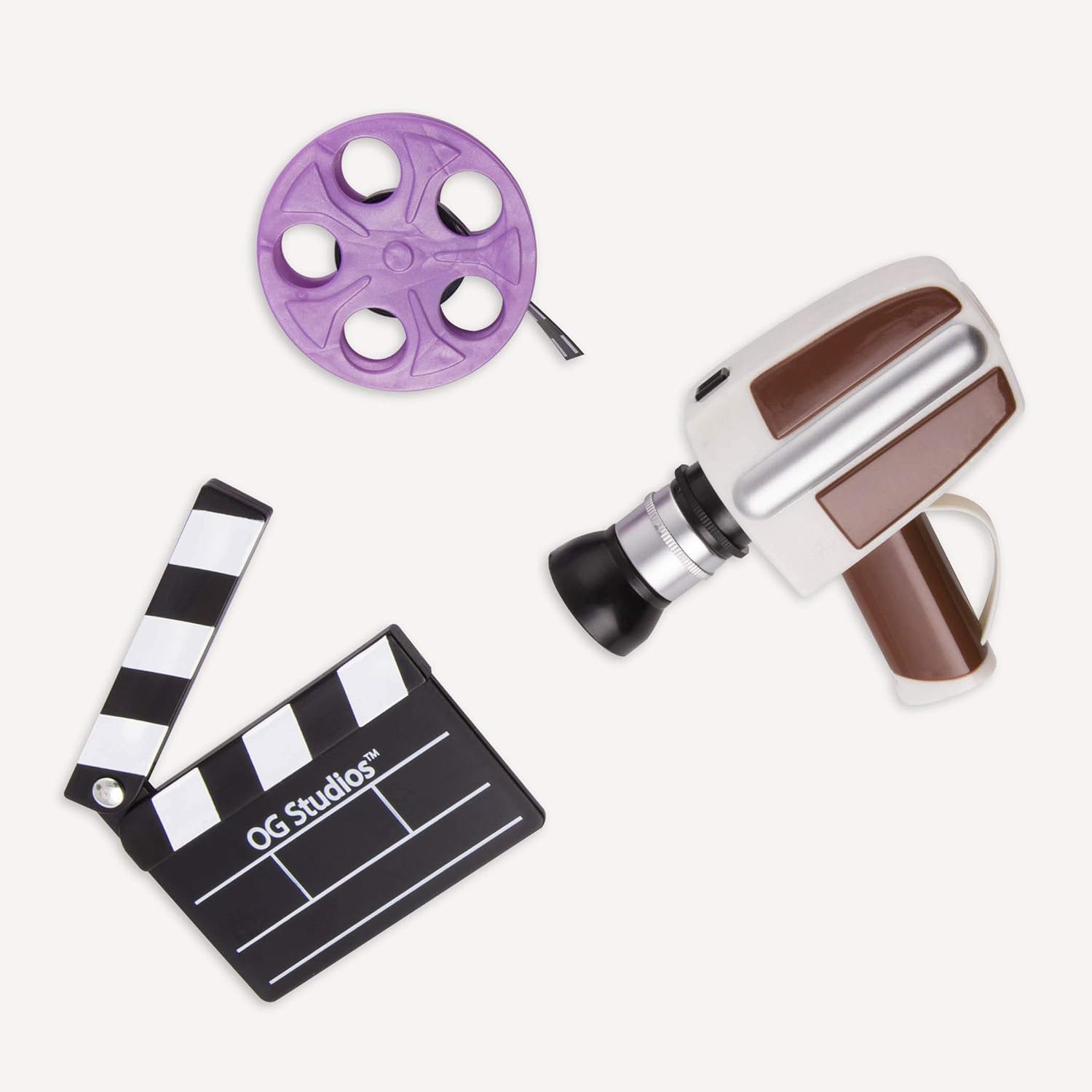- Inclui: 1 câmara de vídeo, 1 rolo de filme, 1 batedor de cena, bonecas e roupas vendidas em separado.
