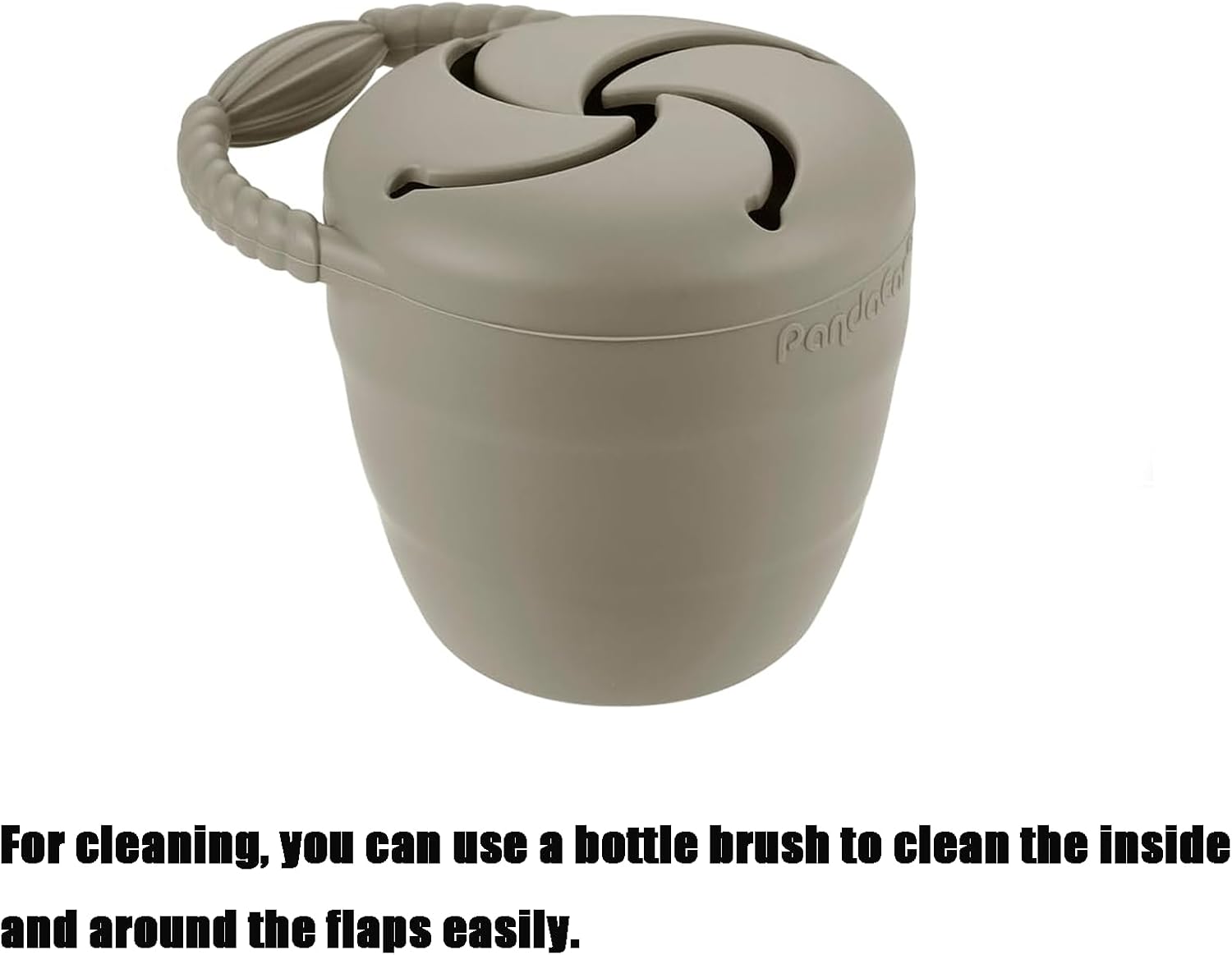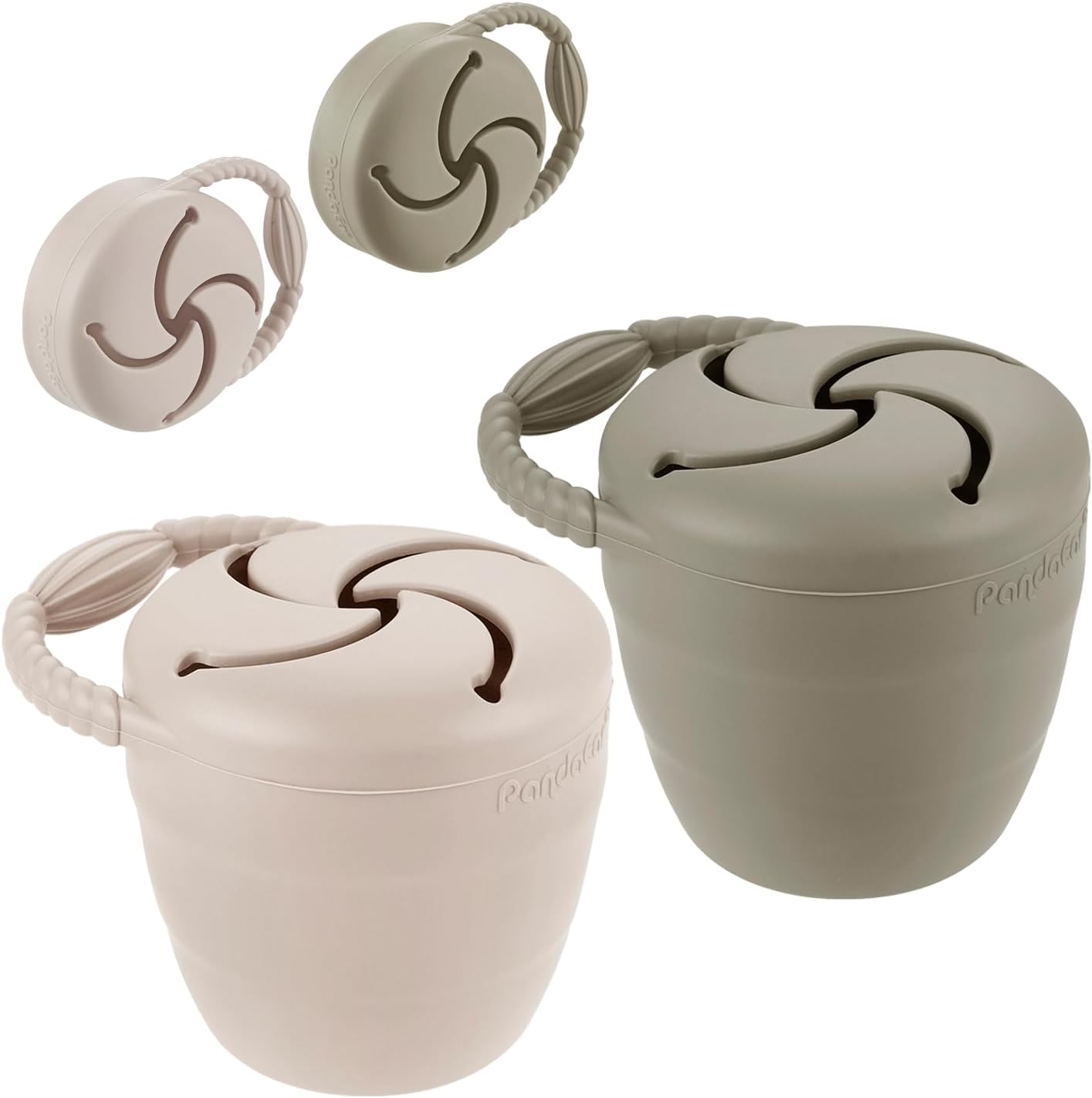 PandaEar Conjunto de 2 Potes para Lanches Infantis , Potes de Silicone Dobráveis para Bebês, Recipiente Antivazamento para Lanches, Coletor de Alimentos, Bege Claro/Nogueira